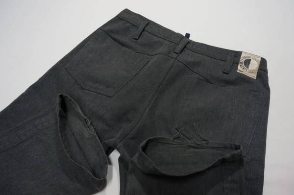 【商品状態の詳細】 (●薄い色落ちやシワがあります。裾にスレ破れがありますので、折り返してクロップド感覚で穿いてみるか、カットして使うことをお勧めします。股部分にリペア跡がありますが綺麗に処理されています。使用感のある中古品になりますので、気になる方は入札をご遠慮下さい。入札は慎重にノンクレーム・ノンリターンでお願い致します。商品状態につきましては、なるべく細かく記載するよう心がけていますが、気になる点は必ず『ご質問して下さい!!』。ご質問なく落札された後、細かな点へのクレームはお断りいたします。●)