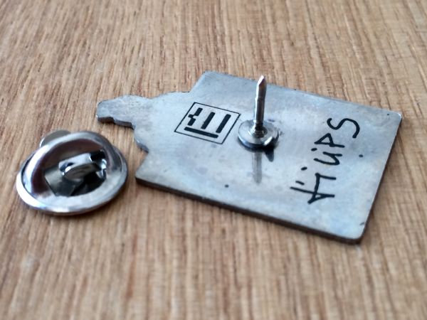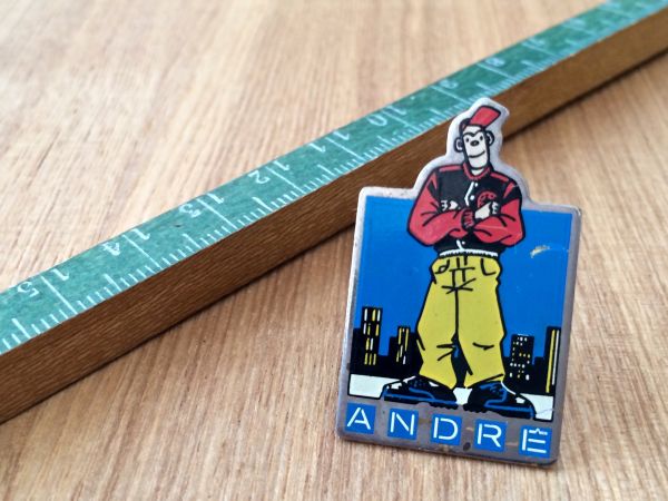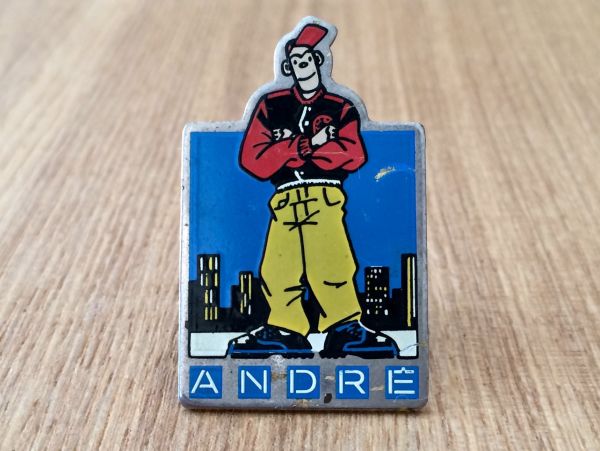 古いピンバッジ:80年代 広告 イラスト 人物 ピンズ #I