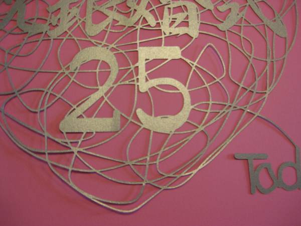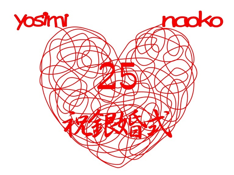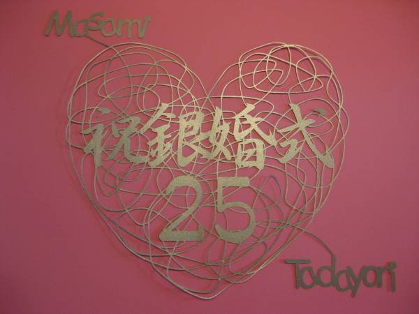 ライン切り絵 銀婚式 二人の名前をハートの銀糸でつないで