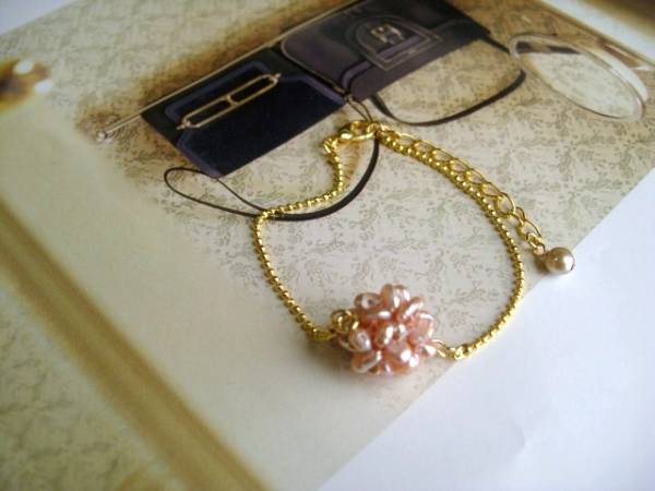 特別な一日・・シリーズです♪眠り姫の首飾り・・可憐なパープルピンクの淡水パールのブレスレットです♪花びらのようなパール 玉がロマンチッ クな表情です♪14ミリ位のパール玉に華奢なボールチェーンを合わせました♪長さは16センチ+アジャスター6センチで最長22センチ位です♪お揃いのネックレスやイ ヤリングも出品 しています♪♪シンプルでいつまでも着けられるデザインを考えて作りました!ハンドメイドをご理解頂いてノークレーム、ノーリターンでお願いします