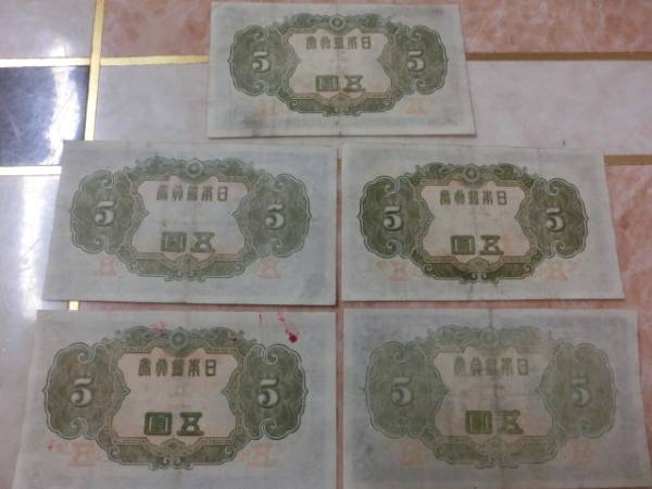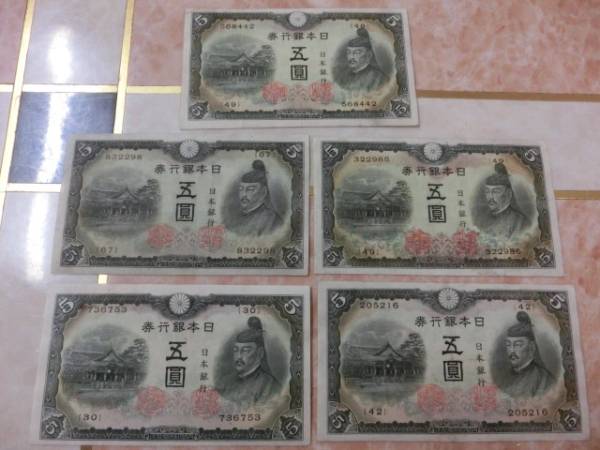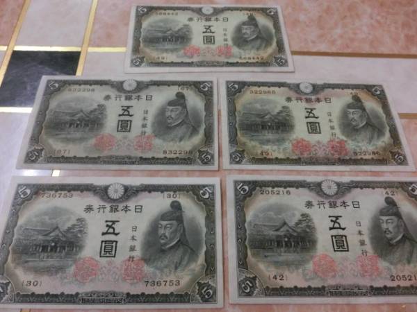 不換紙幣5円 3次5円の美品~を5枚セットです。