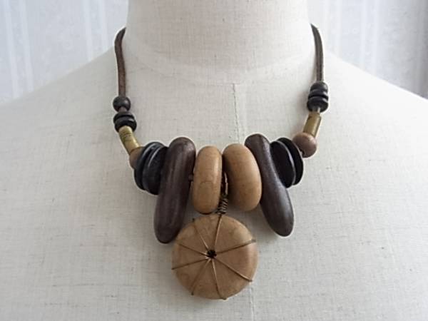 木製★アジアン調が素敵な個性的デザインネックレス▽++