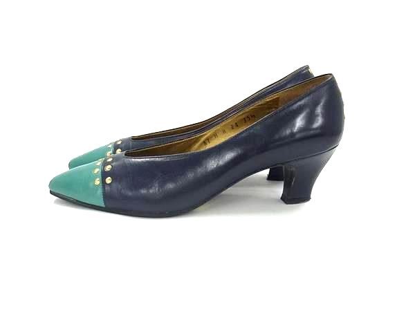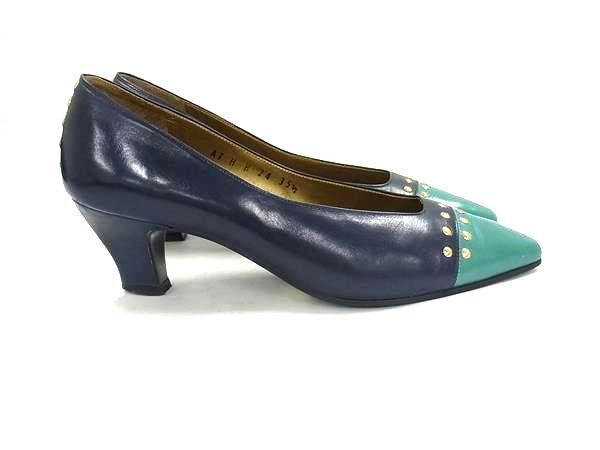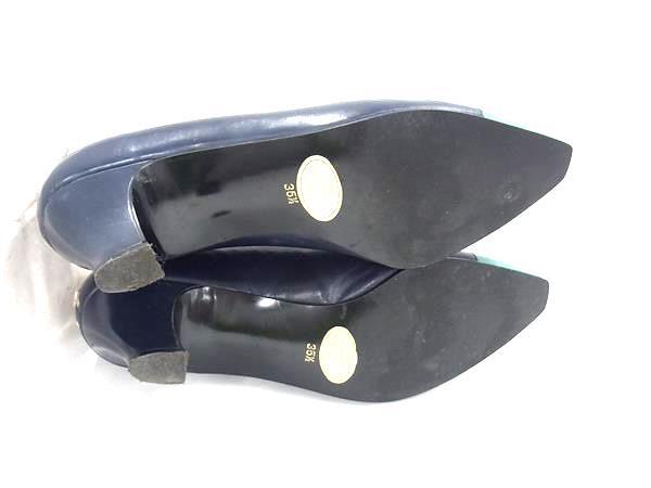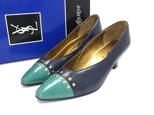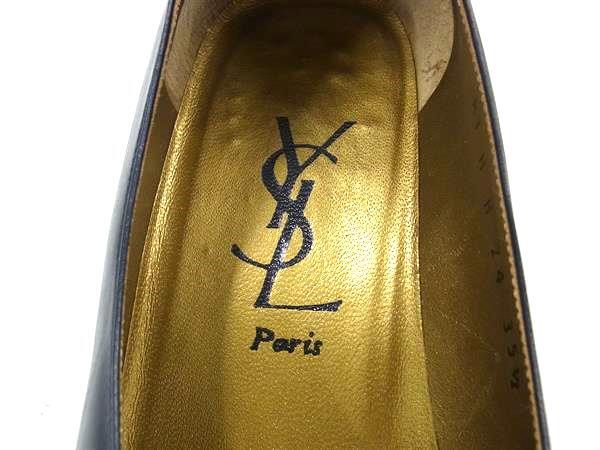 ■美品■ YVESSAINTLAURENT イヴサンローラン レザー ヒール パンプス 表記サイズ 35 1/2 (約22.5cm) 靴 シューズ ネイビー系 DJ4946