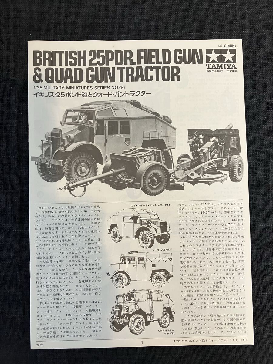 (田)【C-768】TAMIYA 1/35 BRITISH 25PDR.FIELD GUN & QUAD GUN TRACTOR(CANADIAN FORD F.G.T) イギリス 25ポンド砲とクォードガントラクター プラモデル 未組立