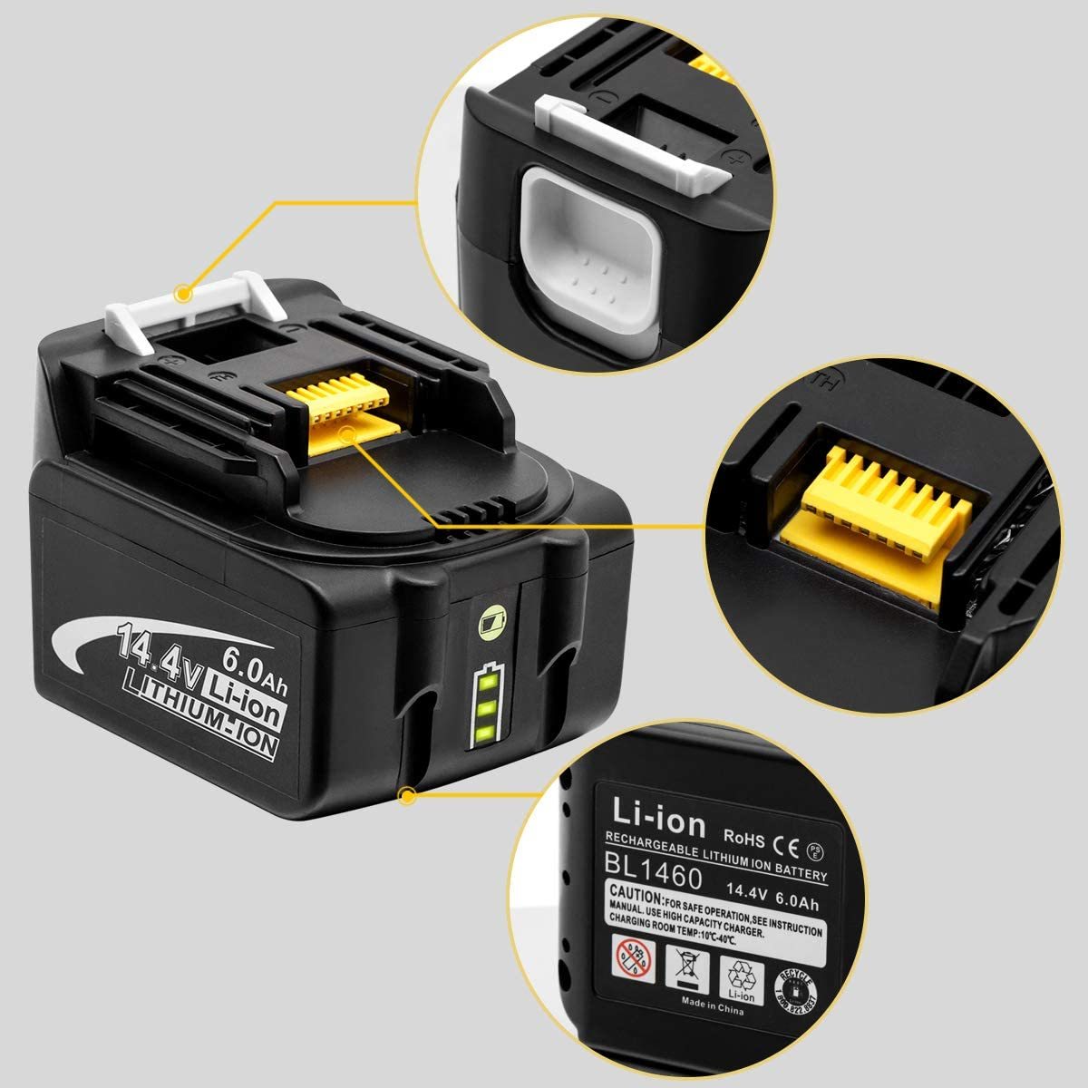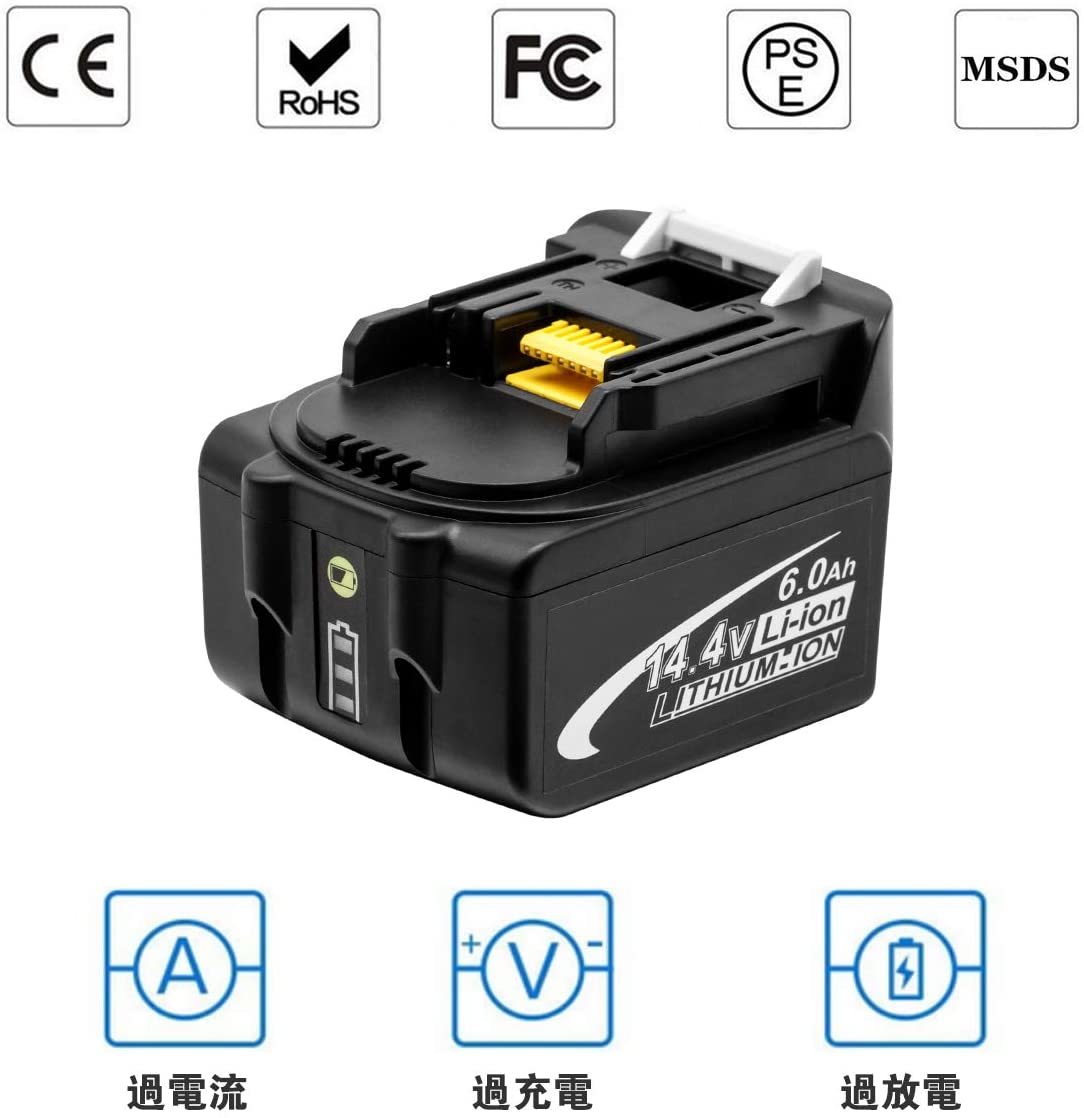 型番:マキタ14.4vバッテリー マキタbl1460b 6.0Ah マキタ互換バッテリー BL1460 電圧:14.4V 【容量】:6000mAh リチウムイオンバッテリー14.4V 互換バッテリー