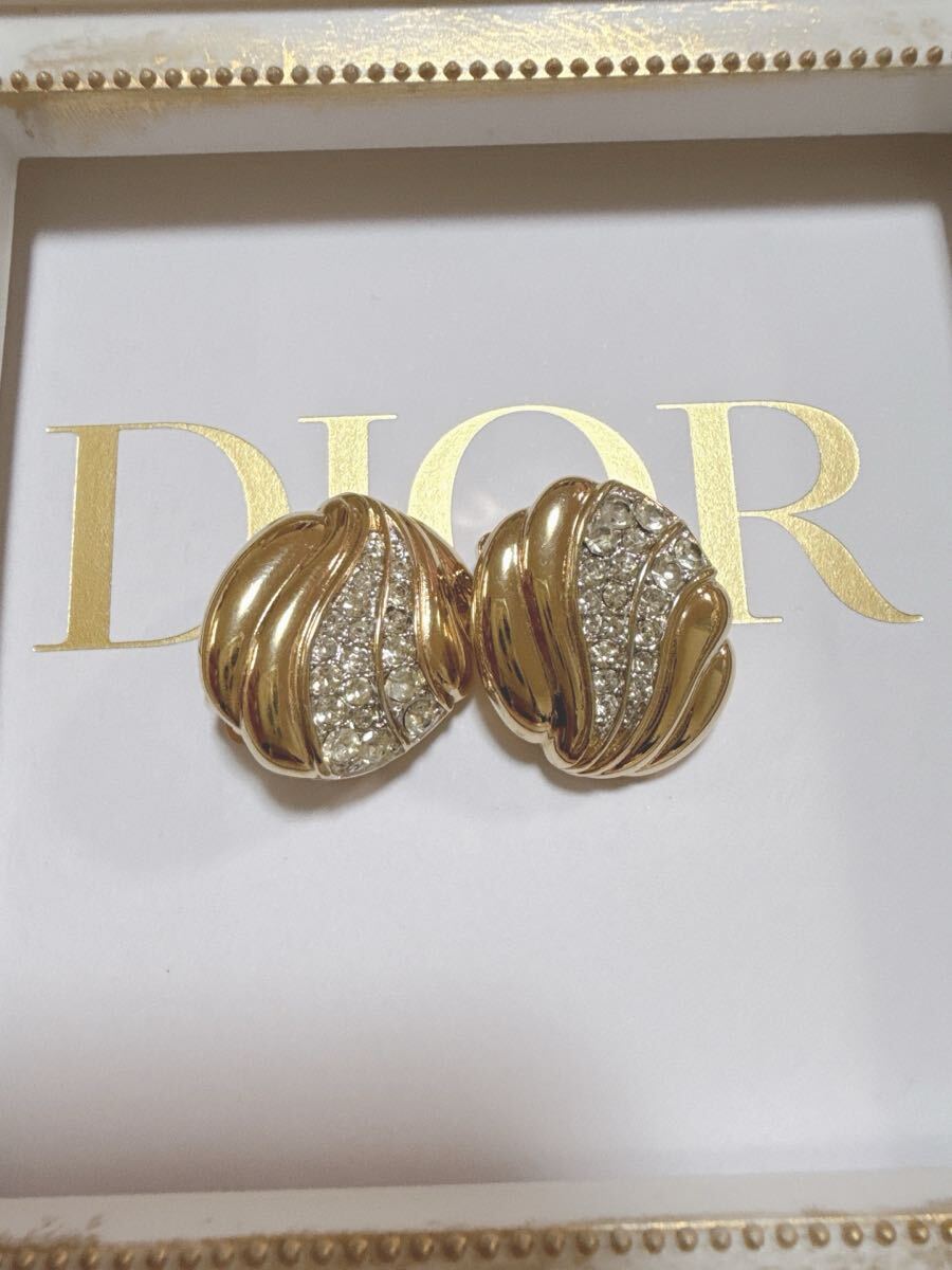 ゴールドカラーにクリアストーンがあしらわれた上品なイヤリングです。