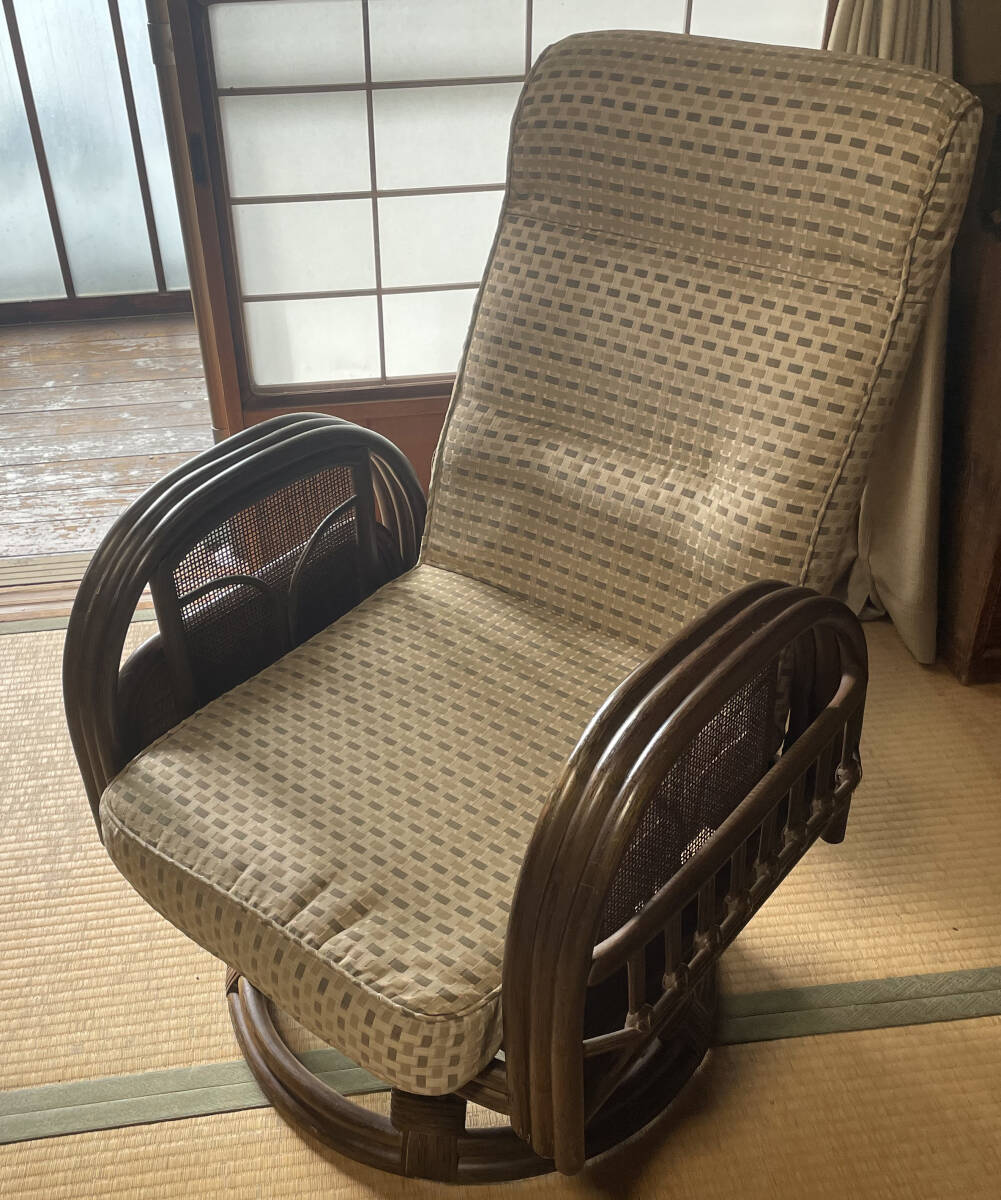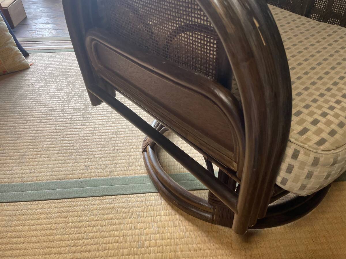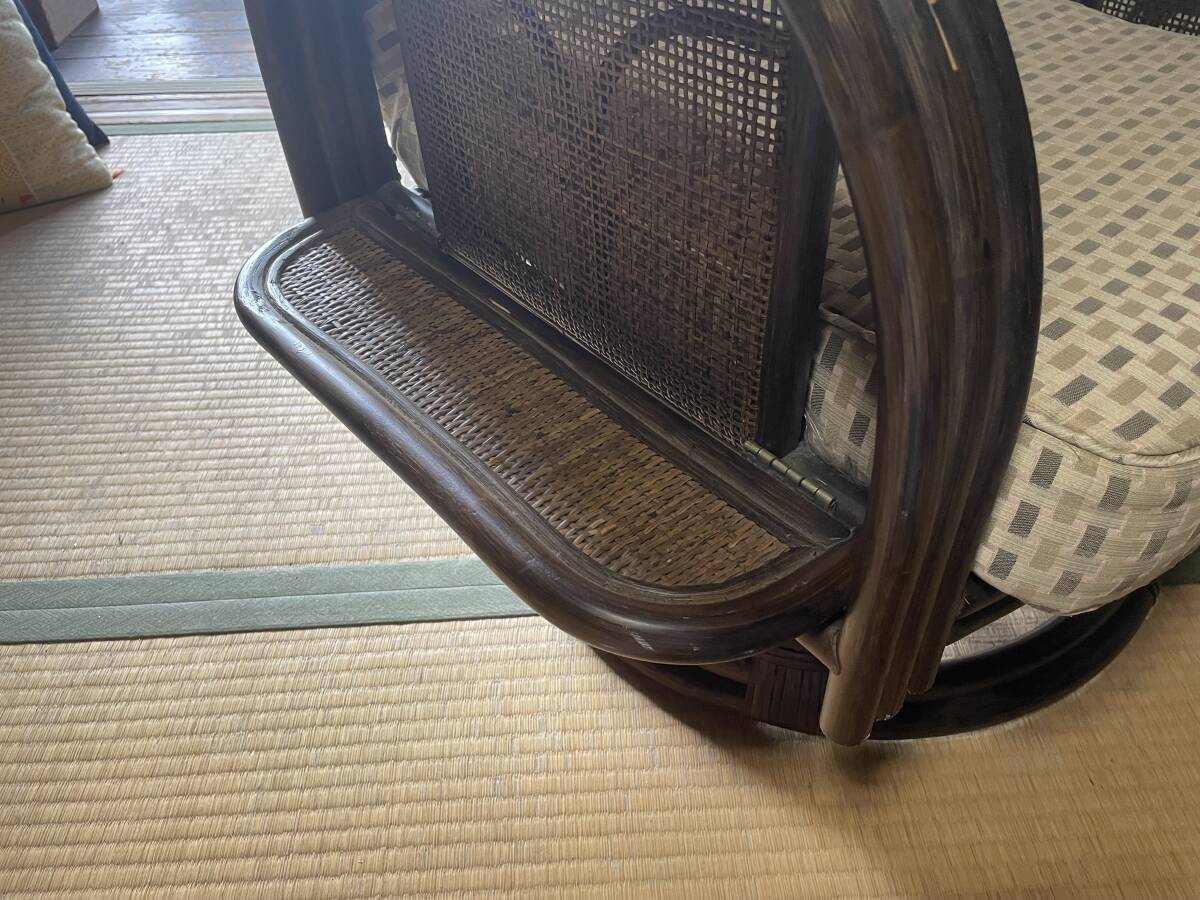 ラタン 籐 リクライニング、回転 マガジンラック、テーブル付 引取歓迎