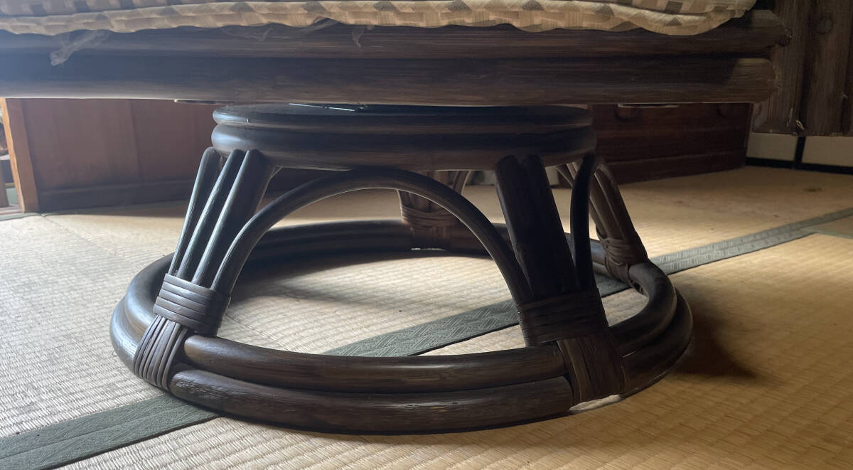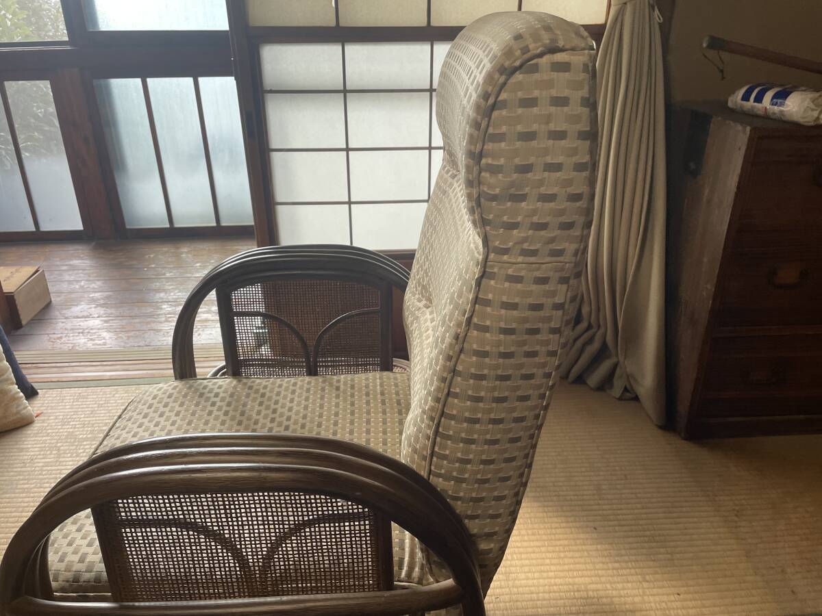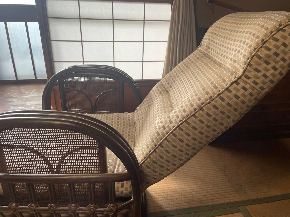 ラタン 籐 リクライニング、回転 マガジンラック、テーブル付 引取歓迎