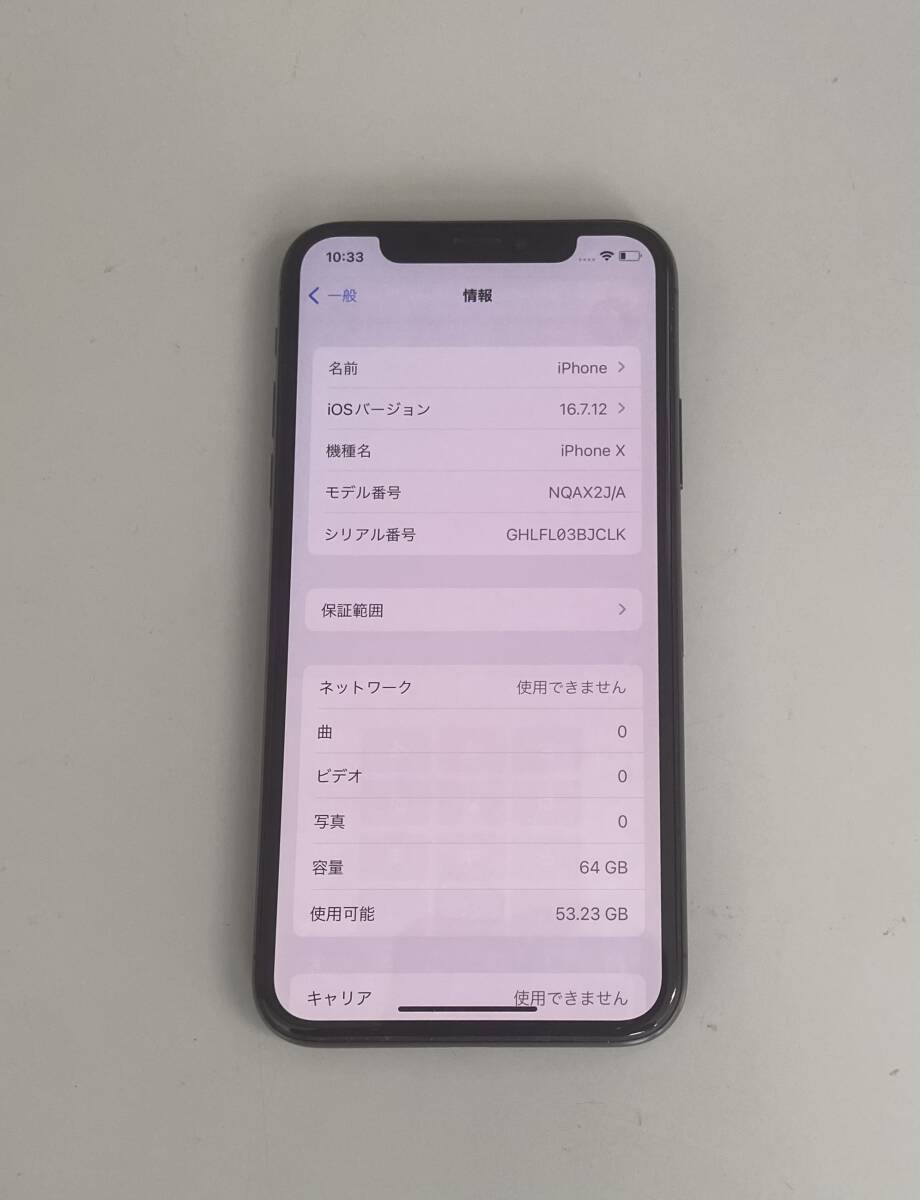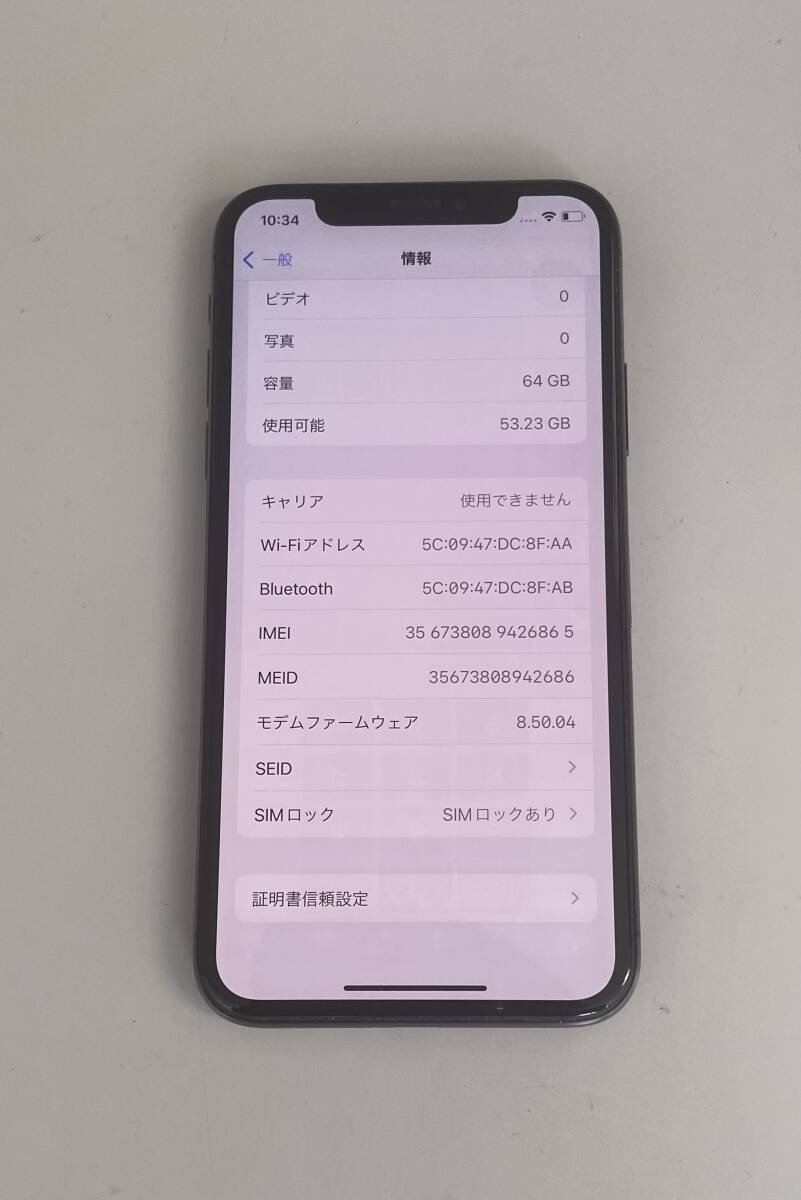 中古 動作確認済み iphone X 64GB ブラック バッテリー100% ジャンク