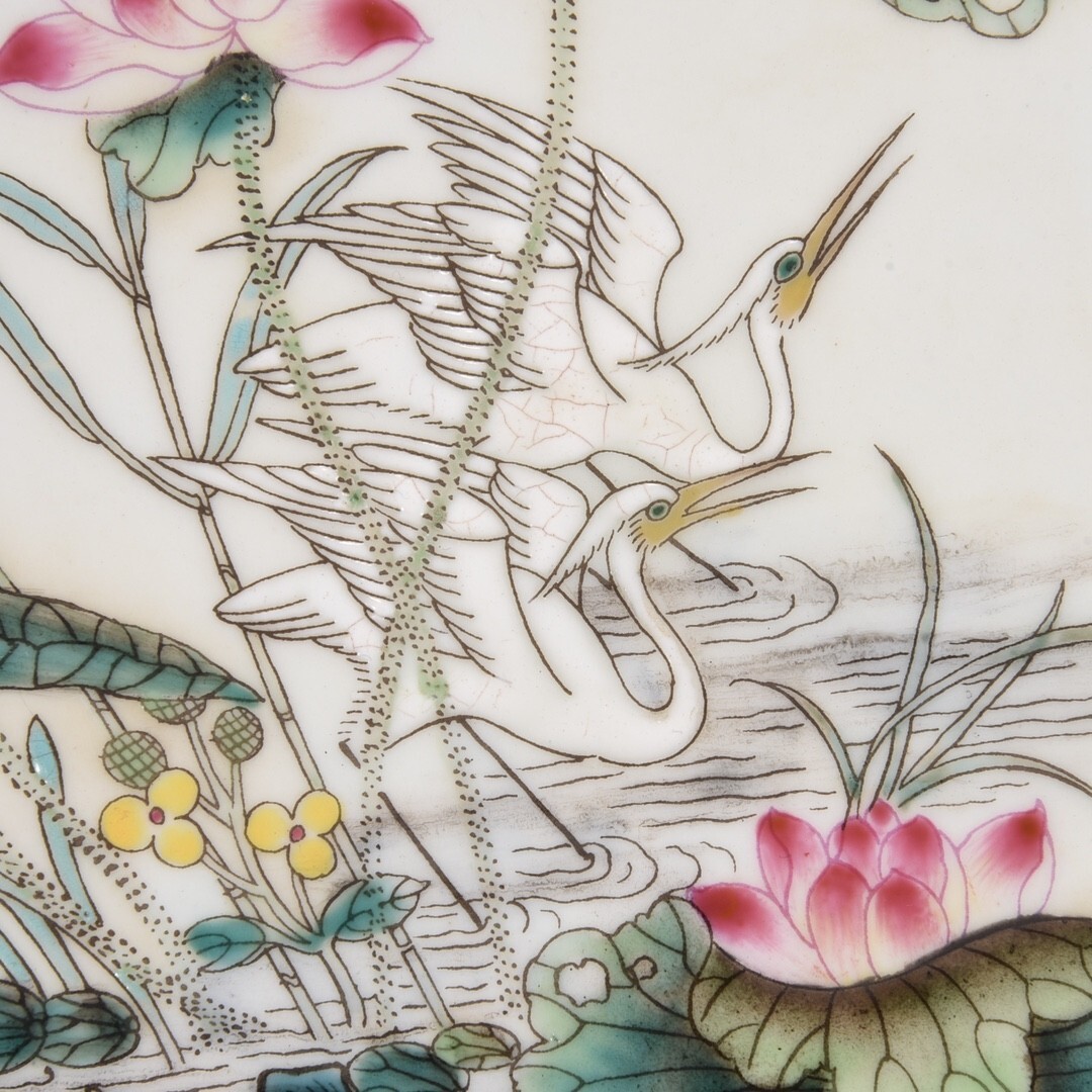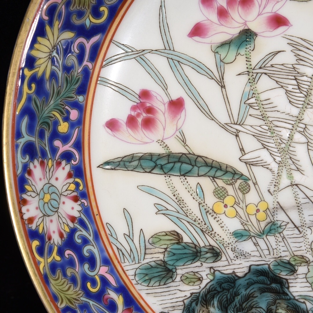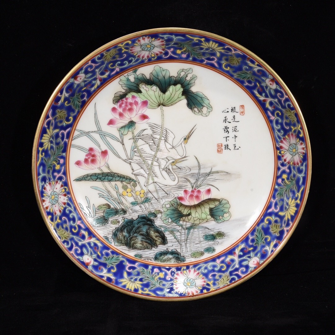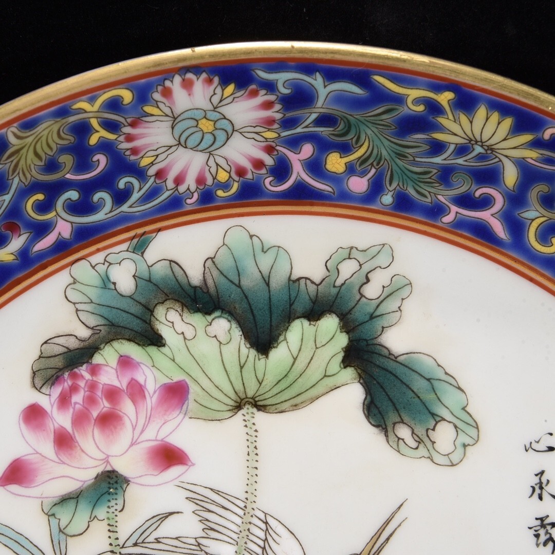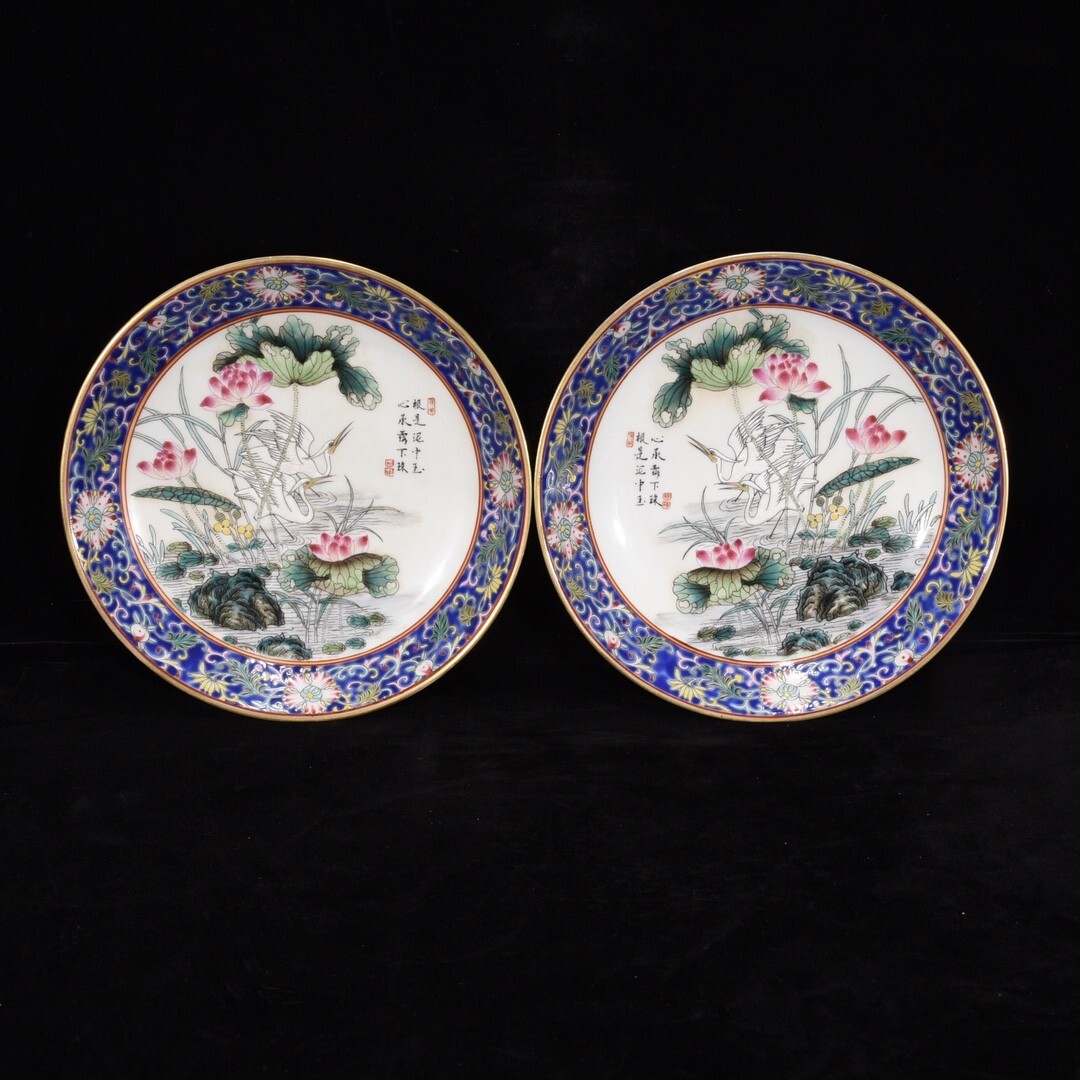 【永】清時代 雍正年製 御賜 粉彩 鶴紋盤 一対 古陶磁器 陶芸 皿 中国陶瓷器 唐瓷 置物擺件 古美術品 古賞物 旧家蔵出 中国唐物 A65