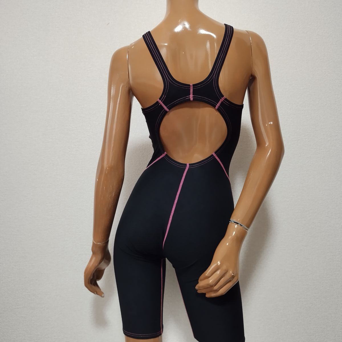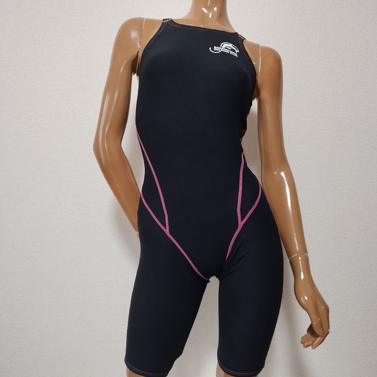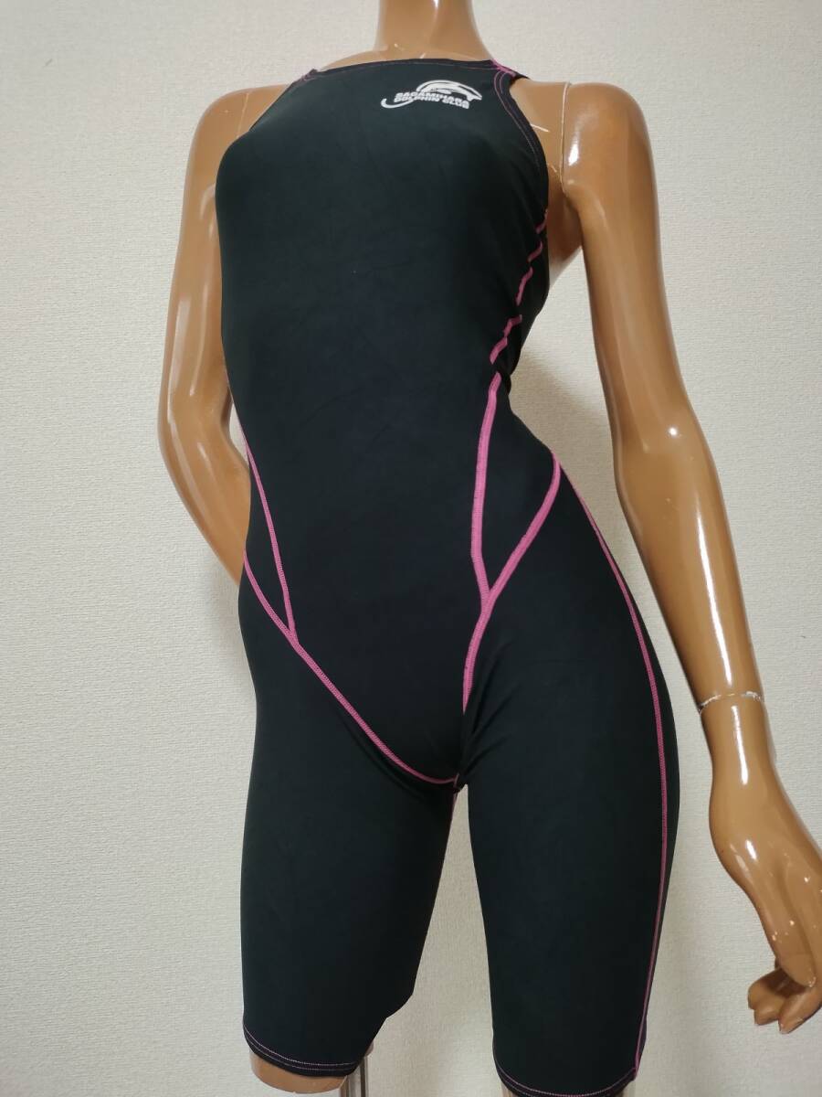 7*ルートワン女子競泳水着(Mサイズ)★相模原ドルフィンクラブ指定水着★オープンバック黒ブラックピンク★ポリエステル100%