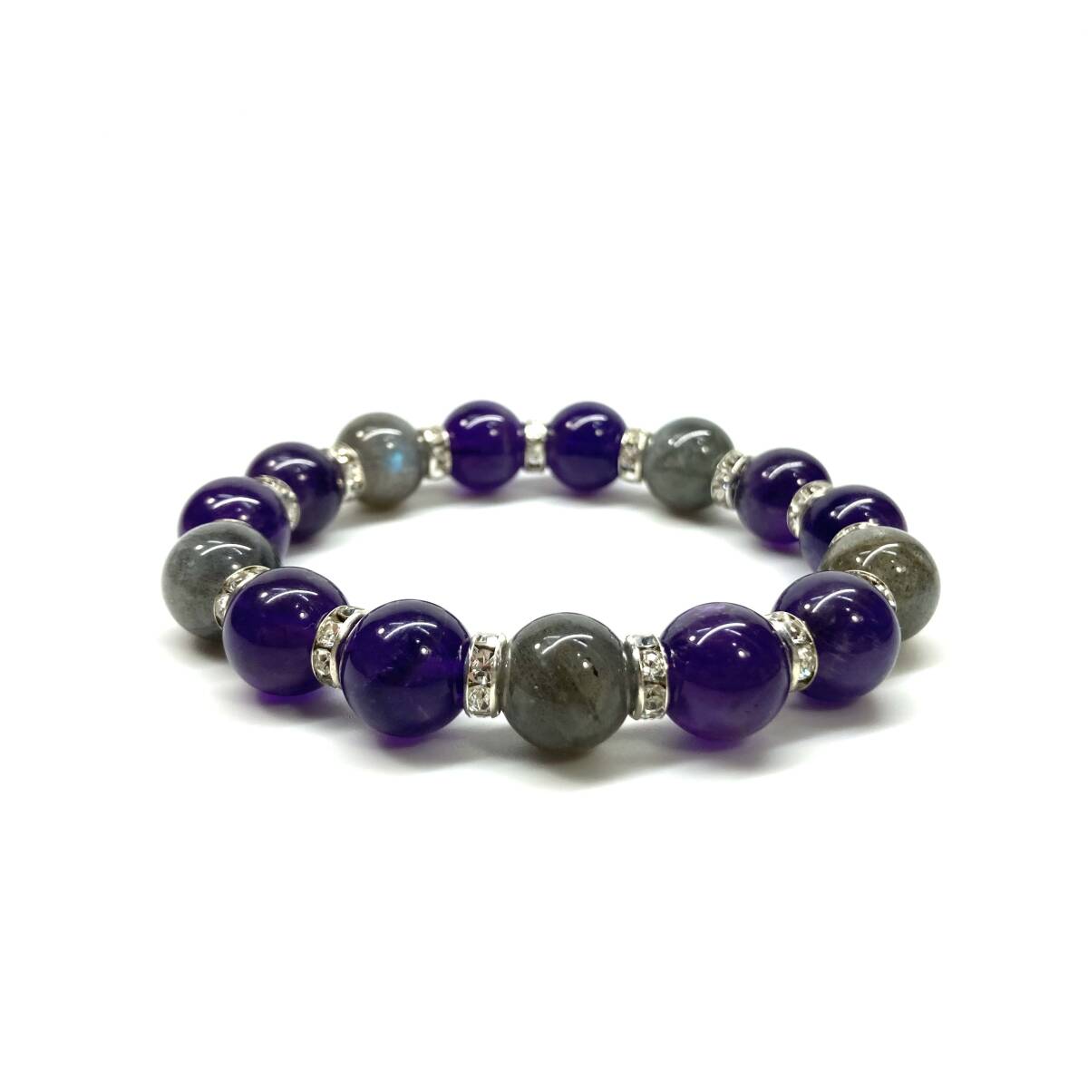 ラブラドライト&アメジスト パワーストーン ブレスレット 天然石ブレス (シルバー) 12mm メンズ・レディース 男性 女性 幸運 数珠ブレス