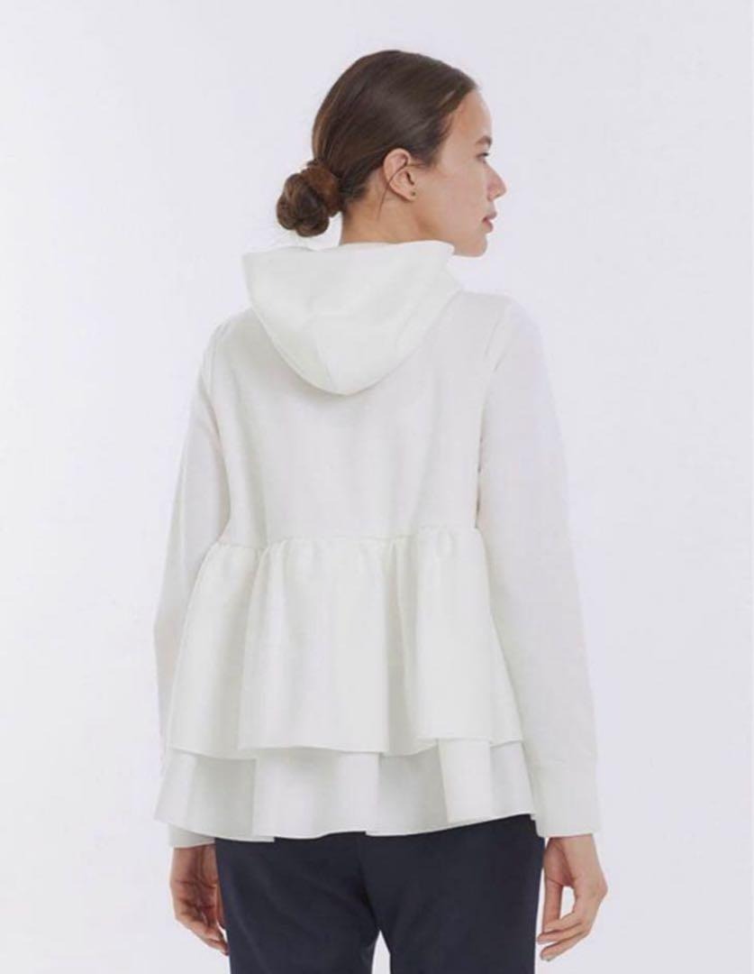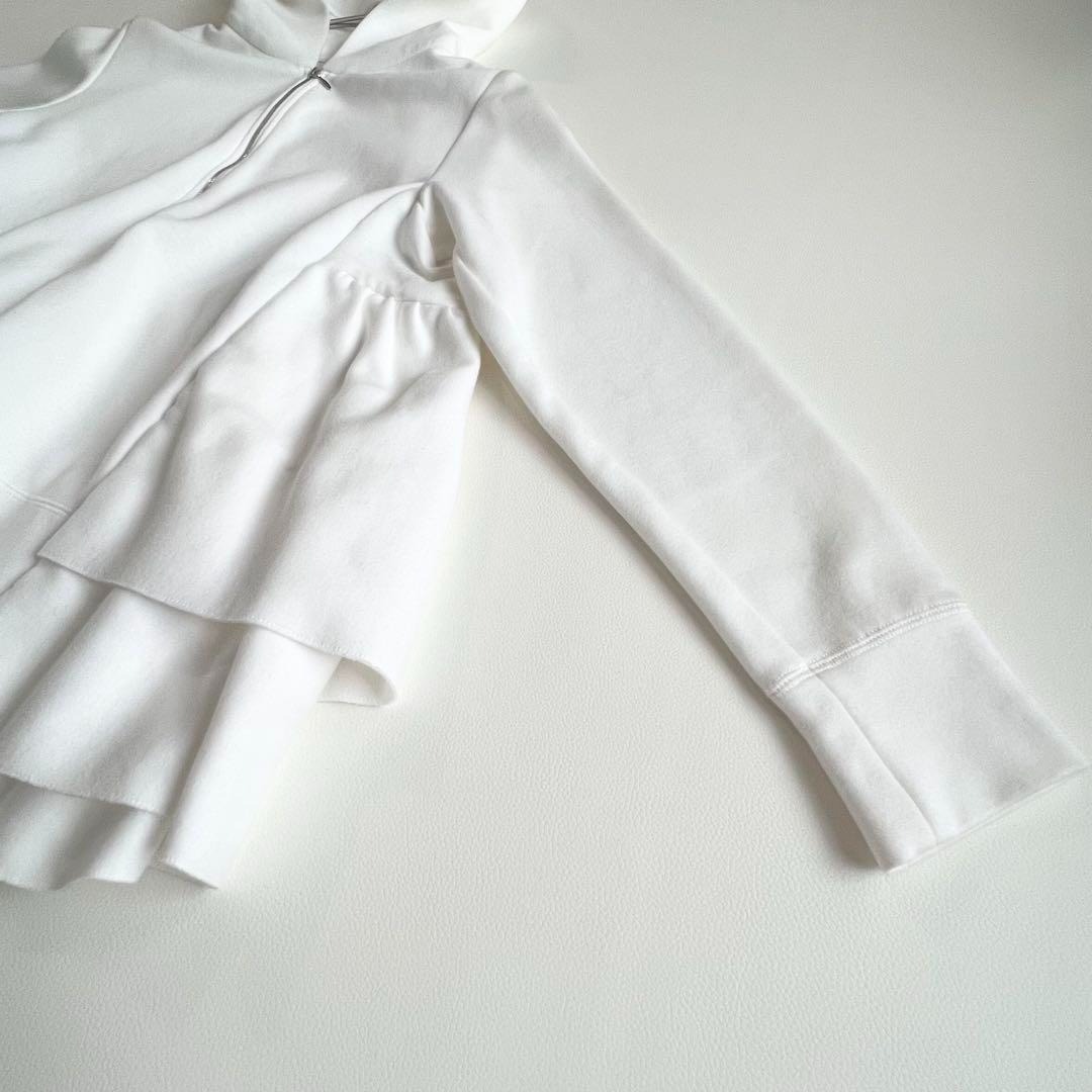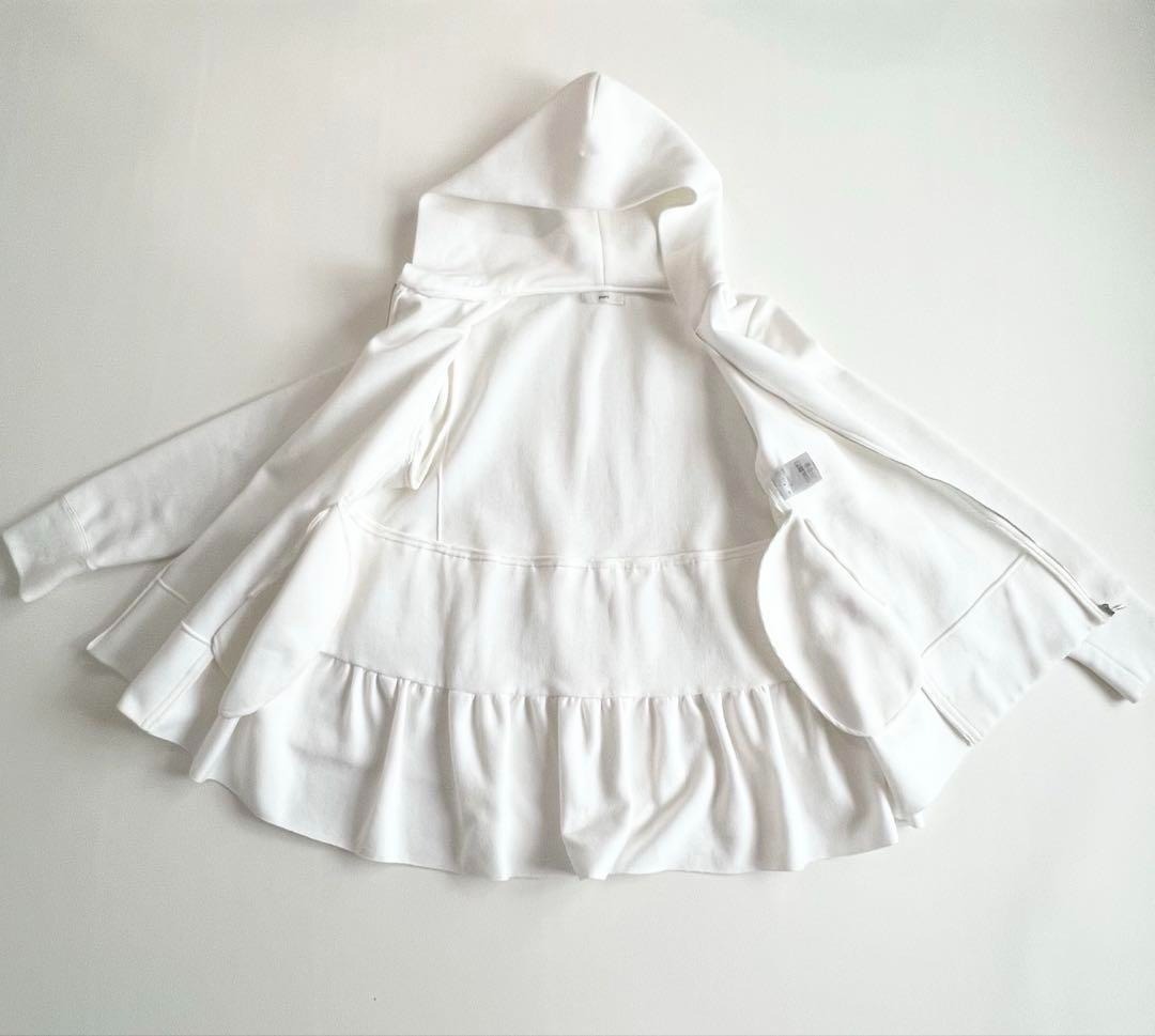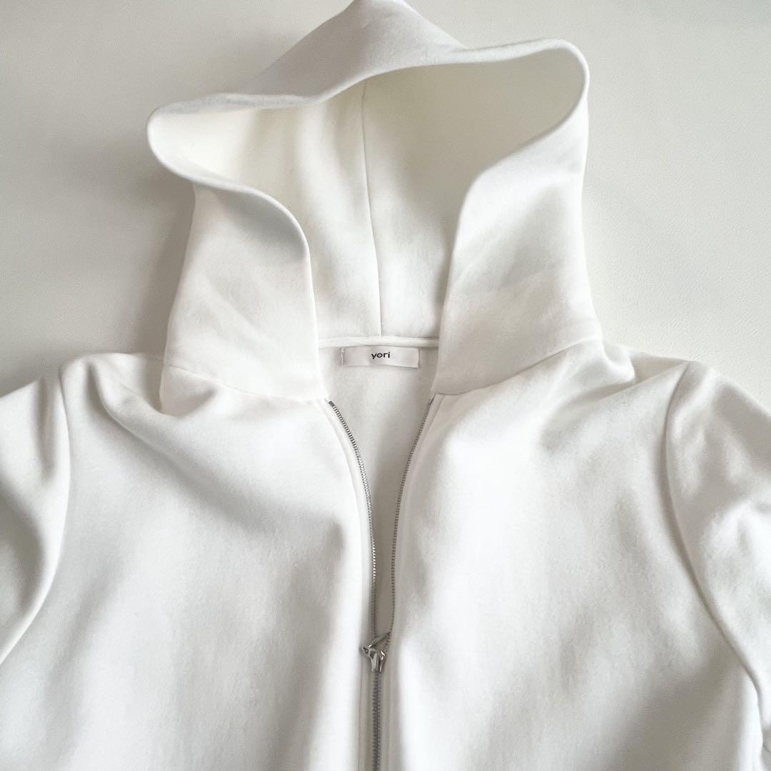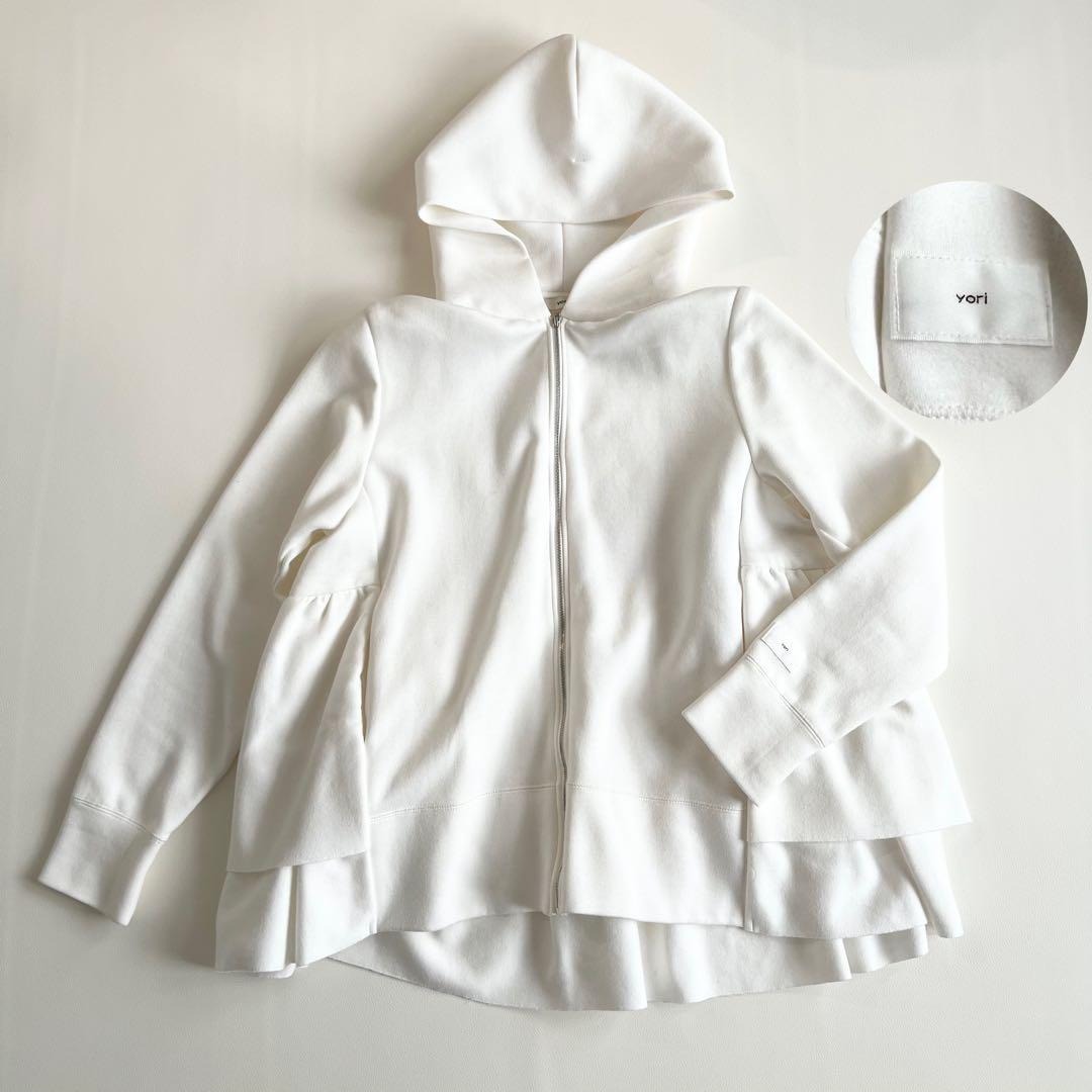 yori ヨリ パーカー ジップアップ フレア バックギャザー ダンボールニット フーディー ホワイト 白 レディース きれいめ カジュアル 大人可愛い 秋冬