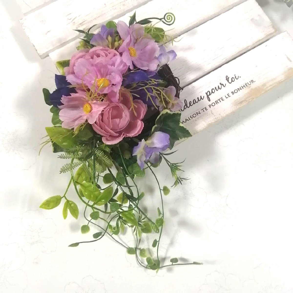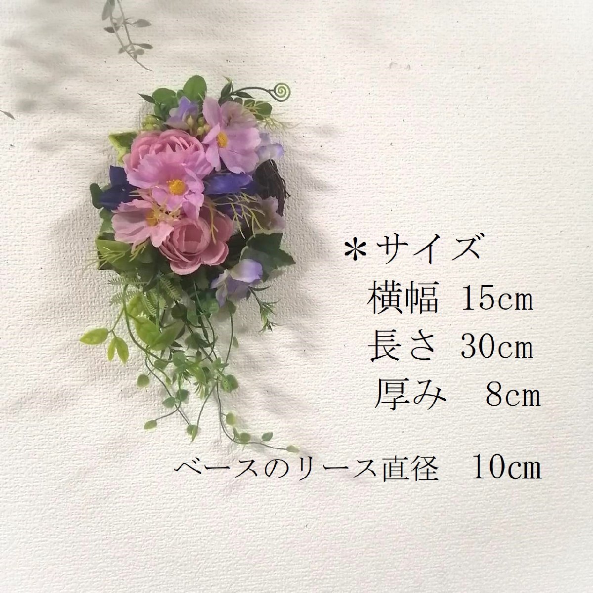 | * 花倶楽部 * 造花壁掛けリース・壁掛けアレンジ ✿…お祝いにも花倶楽部のお花を…✿ ずっときれいに咲いているアーティフィシャルフラワー(造花)の壁掛けです。 ピンクのコスモスを飾ったリースです。 ふんわり癒されるお花に仕上げました。 お好きなところへ飾ってやさしい空間をお楽しみください。 気に入っていただければうれしいです。 裏側に壁掛け用の輪をワイヤーで作ってあります。 大事な方へのプレゼントにも♪ ◇毎日きれいに咲いている造花のリース・壁掛けはギフトにもお勧めです。華やかな空間作りにどうぞ◇ ご自宅用に、プレゼントに、ご利用ください♪ ** プレゼントラッピング・メッセージカードも無料でお付けできます** お買い上げ前に、ご不明なこと等、 どうぞお気軽にお問い合わせください。 ◆発送について 宅配便・定形外とも 透明のラッピングフィルムで包んでから、プチプチの梱包材で包み 段ボールに入れて丁寧に梱包して、お届け致します。 発送の手配は月~金曜日の平日となります。 (土・日・祝日はお休みです) ・定形外郵便は追跡は出来ませんので ご了承どうぞよろしくお願い致します。 ・宅配便はゆうパックで発送致します。 お届けの時間指定ができます。 午前中 12時頃~14時頃 14時頃~16時頃 16時頃~18時頃 18時頃~20時頃 19時頃~21時頃 ◆お花・花器の破損について 至急ご連絡をお願いします。 お客様のご負担にならないように 個別に善処させていただきます。 ◆返品交換について お客様のご都合の場合は、送料お客様負担で承ります。 到着より2日以内で至急、ご連絡をお願いいたします。 気持ちの良いスムーズなお取引に心がけますので、 どうぞよろしくお願いいたします。 |