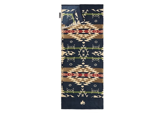 温度調節に最適なフリース素材のシュラフに、 LOGOS LAND柄をデザイン。