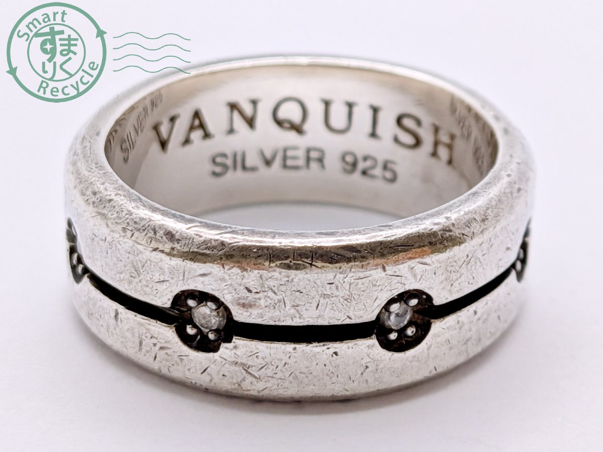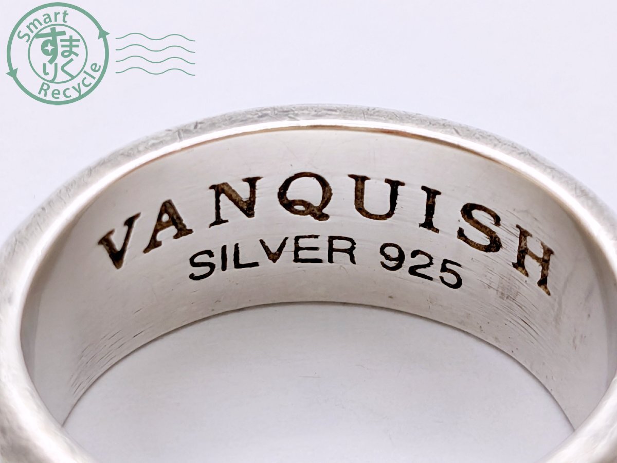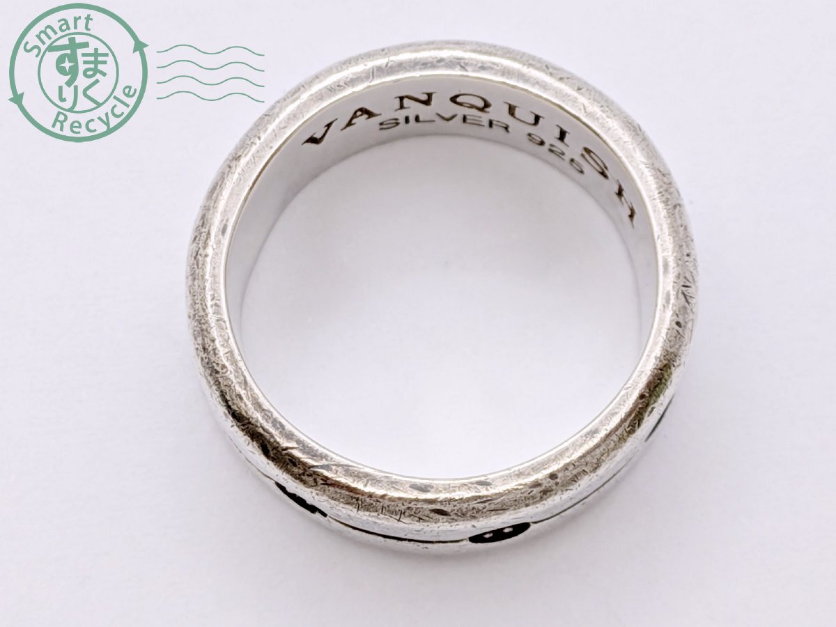 ★ VANQUISH ヴァンキッシュ SILVER シルバー 925 リング 指輪 ストーン 約12.4g 約19号 幅約8.9mm メンズアクセサリー | |||