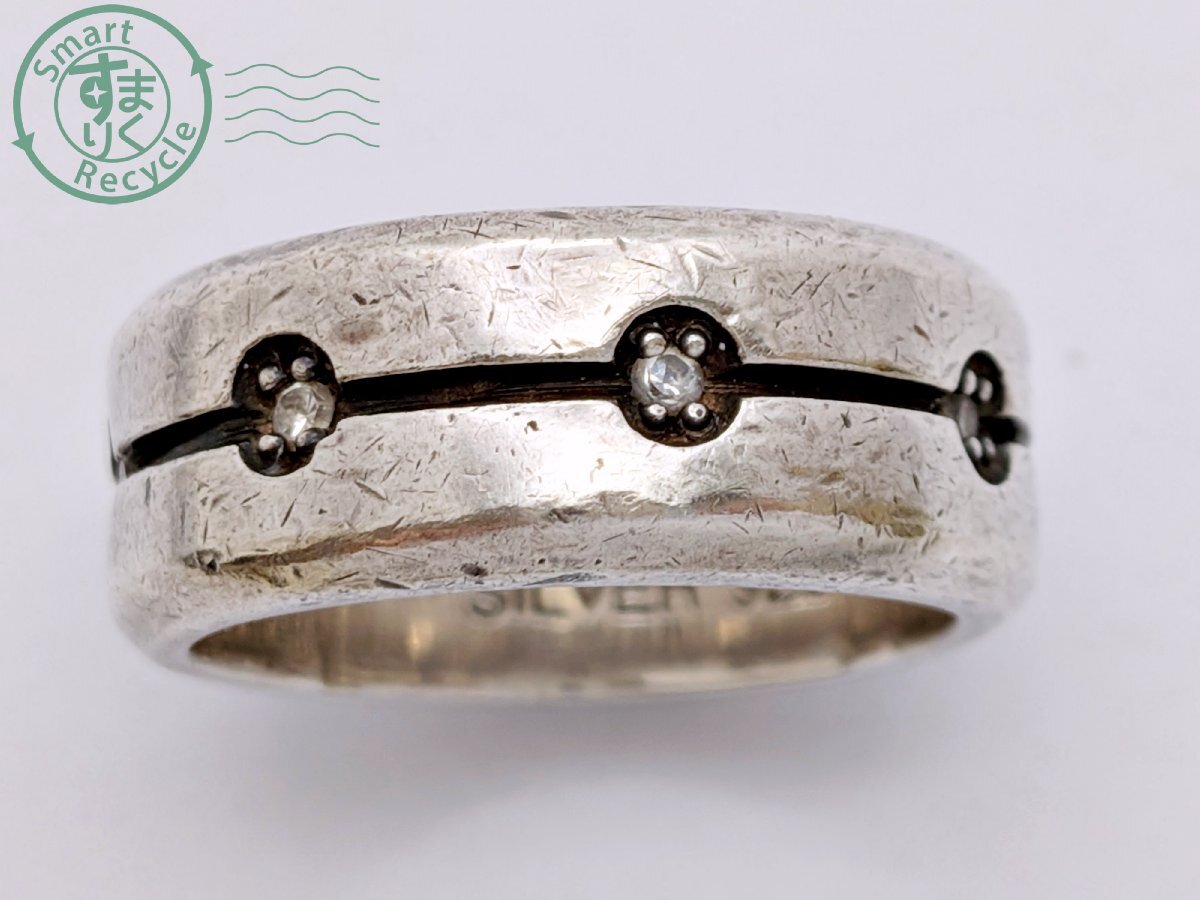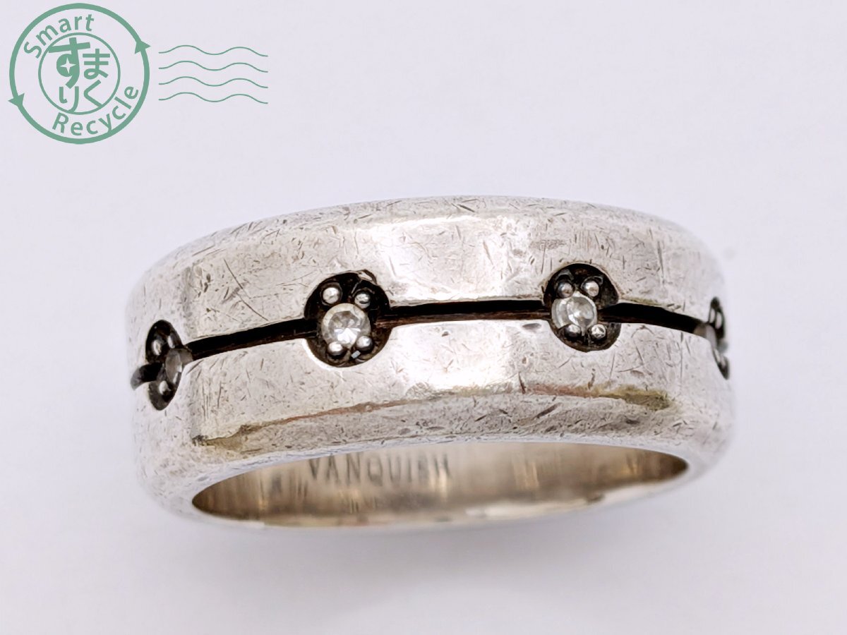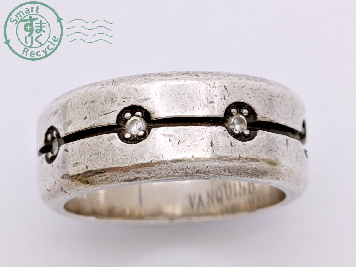 ★ VANQUISH ヴァンキッシュ SILVER シルバー 925 リング 指輪 ストーン 約12.4g 約19号 幅約8.9mm メンズアクセサリー | |||