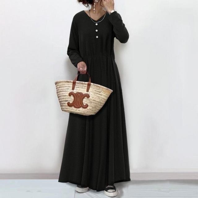 ロングワンピース 秋冬ワンピース チェックワンピース 切り替え フェイク レイヤード風 レディース 後ろリボン付き