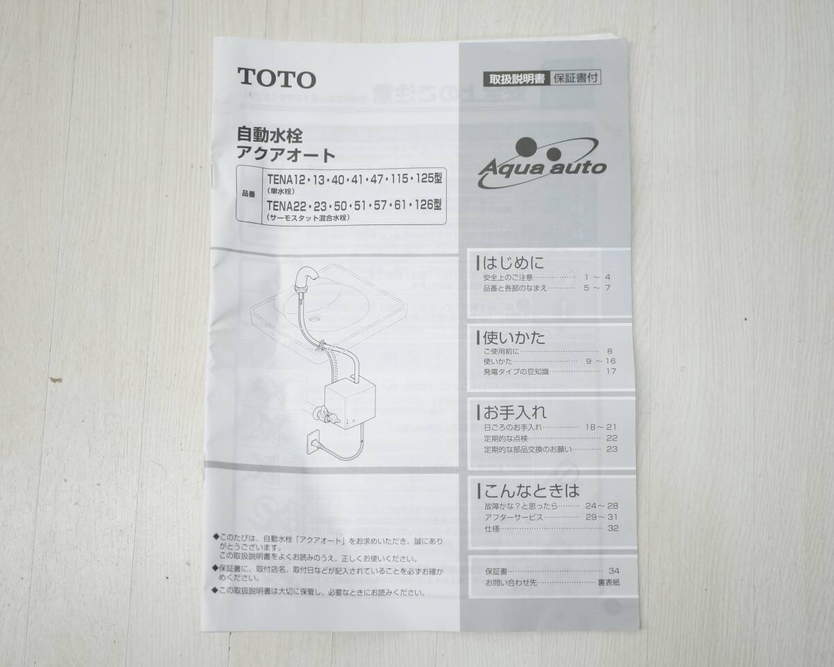 ■東ハ:【TOTO】アクアオート 台付自動水栓 TENA40A 単水栓 / アダプター TH752-3 自動水栓φ35穴対応用 ★送料無料★■ 【TOTO 台付自動水栓 アクアオート TENA40A】 ・スパウト形状:Aタイプ ・屋内用 ・電源:AC100V 50/60Hz ・取付方法:台付き ・機能部:単水栓 ・操作方法(水の出し方):手を差し出す ・使用環境温度:1~40℃ ※凍結が予想される地域ではご使用できません。 ☆詳しくは→メーカーホームページへ 【TOTO アダプター TH752-3 (φ35用、自動水栓用) ※当方に動作確認を行う環境がございませんので、動作未確認のお品となります。 また、当方は専門業者ではございませんので、詳細な動作については保証できかねます。 現状でのお取引となりますので、予めご了承のうえご参加下さい。 中古のお品となります。 付属品は写真にあるものが全てです。 使用に伴うシミヨゴレ・水跡残り、キズがございます。 商品画像をよくご確認の上、ご参加ください。 [管理No.25102111R1] |