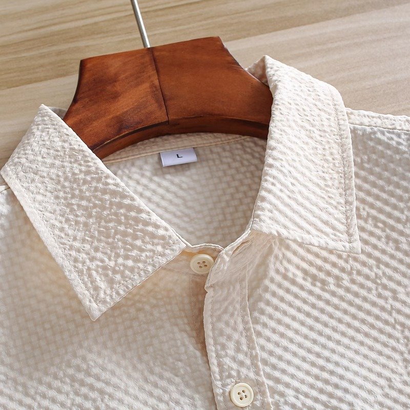 新品 長袖シャツ 涼しい シアサッカー サマー ゆったり 形態安定 メンズ 胸ポケット 吸水速乾 レギュラーカラー/オフホワイトT5031-2XL