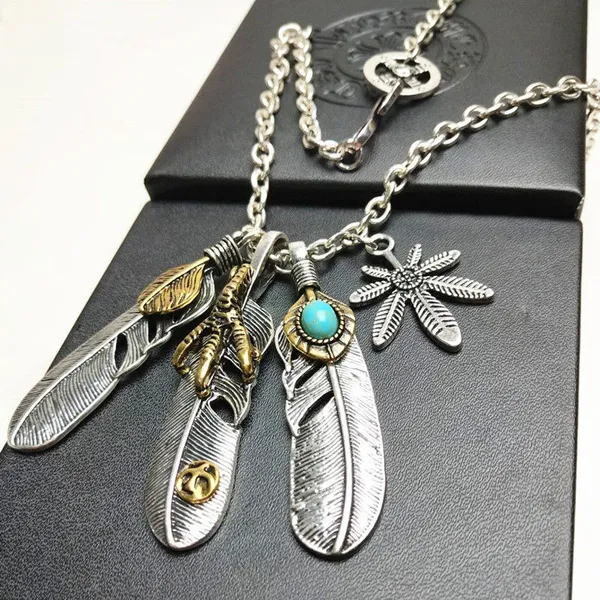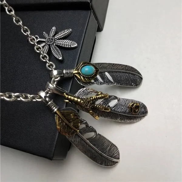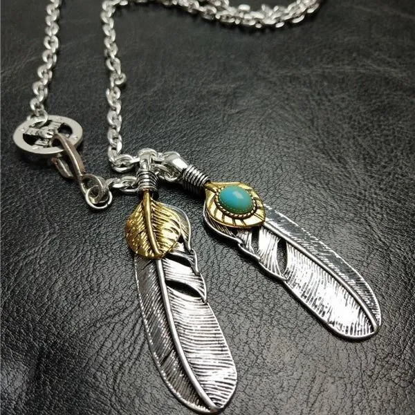 ネイティブな雰囲気★シルバー925色イーグル&ゴールドフェザーネックレス