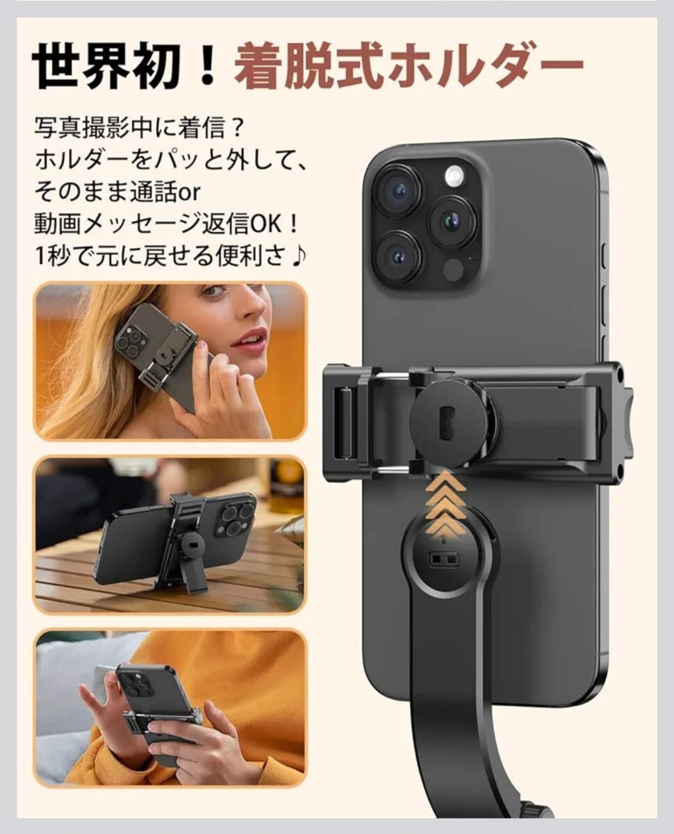 【全機種対応デザイン】 4~7インチのほぼ全ての機種に対応。付属のマルチアダプターで特殊形状ケースもOK!270°可動式アームで、ローアングルから俯瞰ショットまで自由自在。1台で自撮り棒・カメラ用三脚・ビデオスタンドの3役をこなす万能選手です。
