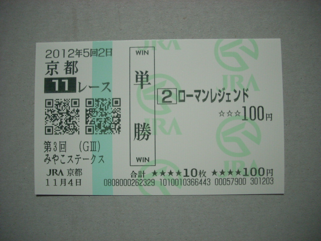 ■ローマンレジェンド:第3回みやこステークス(GⅢ) 現地的中。代理出品。年数が経っているので色あせ等がありますので、神経質な方はご遠慮下さい。画像で判断してください。ノークレーム・ノーリターンでお願い致します。 発送はミニレター・定形(普通郵便)を予定しています。
