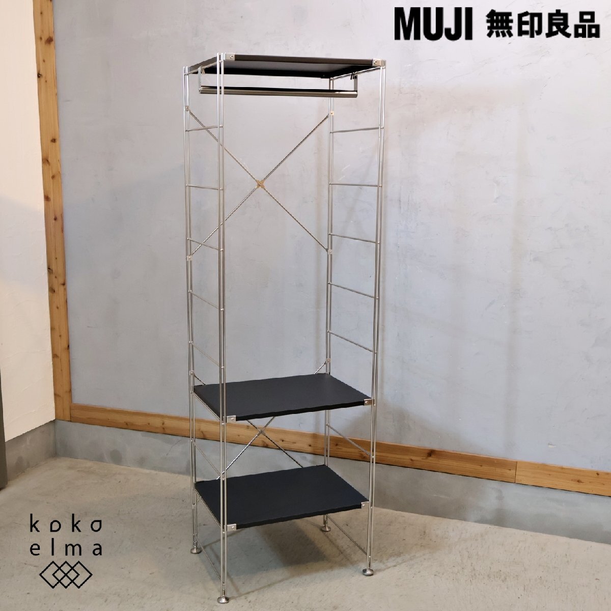 無印良品 MUJI ステンレス ユニットシェルフ ダークグレー ワードローブバー付き スチール 3段ラック インダストリアル シンプル FJ212