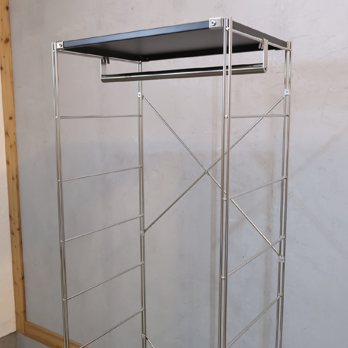 商品名  ステンレスユニットシェルフ/ダークグレー ワードローブバー付き
