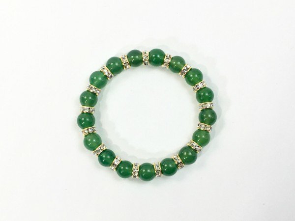 こちらは、10mm玉の緑瑪瑙を使用したパワーストーンブレスレットです。間にはロンデルを挟み高級感あるブレスレットに仕上げています。石大きさは腕にも馴染みやすいように10mm玉を使用して、サイズは内径約18cmです。(サイズ調節も無料で承っています。サイズ変更の場合は落札後、取引ナビにてご一報くださいませ。) 数に限りがございますので気になる方はお早めにどうぞ。