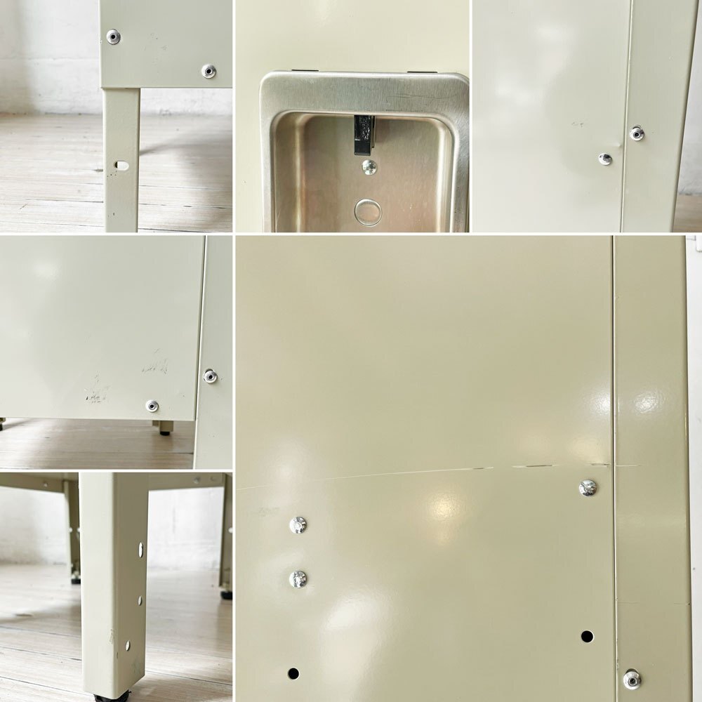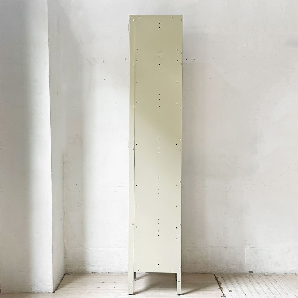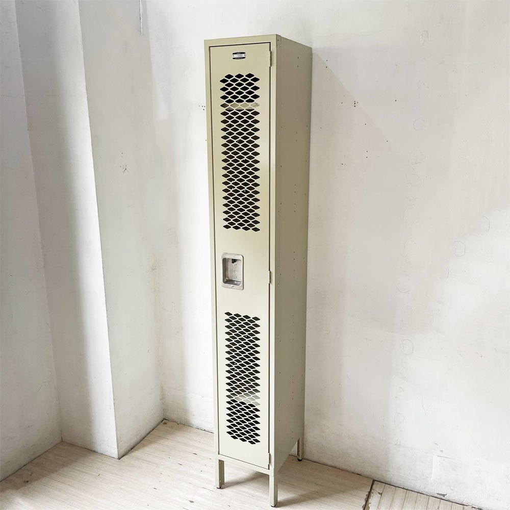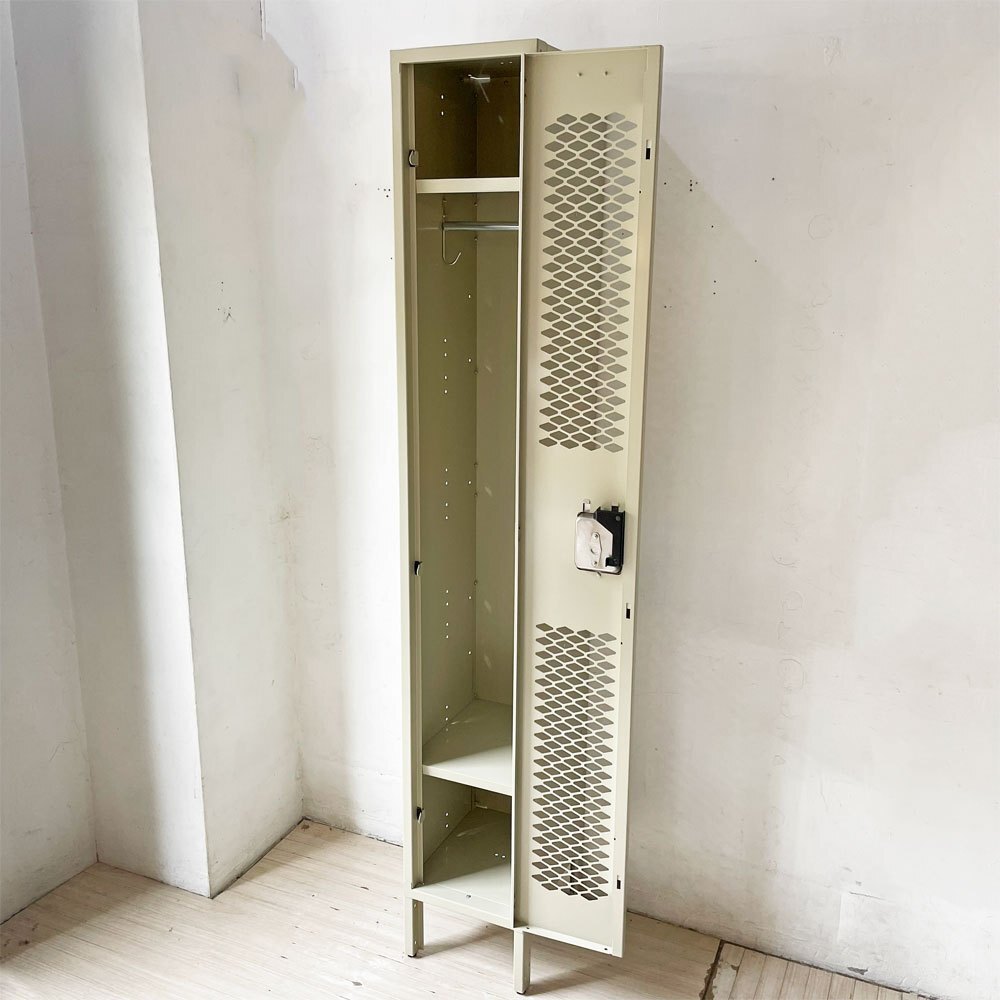 | コメント | 東京目黒に拠点を構え、ビンテージ家具からオリジナル家具まで幅広く取扱う、COMPLEX UNIVERSAl FURNITURE SUPPLY(コンプレックス ユニバーサルファニチャーサプライ)が立ち上げたオンラインストア、"WHOLE EQUIPMENT CATALOG"。 惜しくも2020年にクローズしましたが、時代を超えても色褪せない家具や道具を再発見・リプロダクトし、現代に落とし込んでいたメーカーでした。 こちらは、アメリカの学校や公共施設などで使用されているロッカーをモチーフにした"ジェネラルスチールロッカー "です。 内部上段には棚板が備えられており、靴や帽子など小物の収納も可能。 また、ハンガーラックも備わっておりジャケットなどの衣類も掛けられ、下段はカバンや靴の収納にもお使い頂けます。 ハンドルはリセス(埋め込み)タイプが採用され、上部の黒いレバーを上にあげる事で開閉する仕様です。 幅30.5cmのコンパクトなサイズ感は手狭な日本の居住空間に優しく、隙間収納としてもフィットしてくれる優れもの。 勿論、洋服を掛けたりといった従来の収納器具としての機能性も十二分に保たれておりますが、扉を開けて扉部分に物を吊るしたり、張ったり、内部の棚に小物を飾ったりと、工夫次第ではディスプレイ用品としても力を発揮しますので、ホームユースは勿論、カフェや店舗などの空間演出にも最適な一品となっております。 ※当ショップは、主にリサイクル品を取り扱っております。基本的にUSED品である事をご理解頂き、ご入札をご検討下さいませ。 |