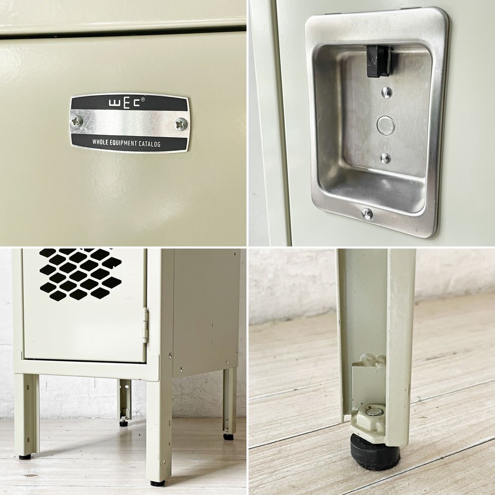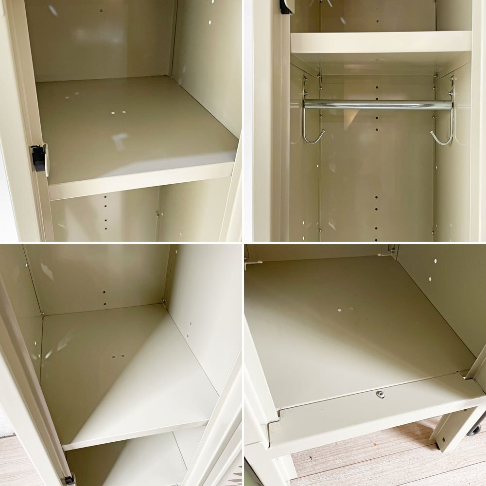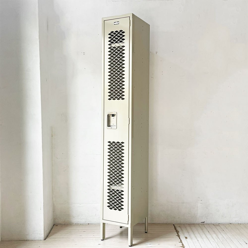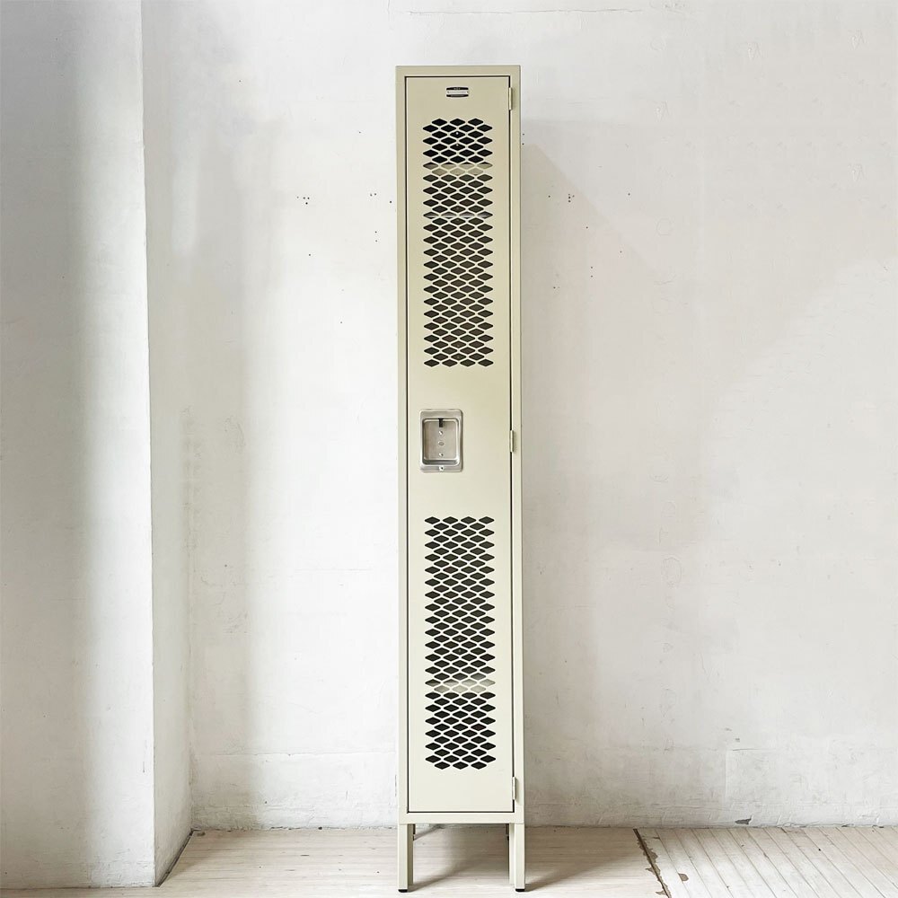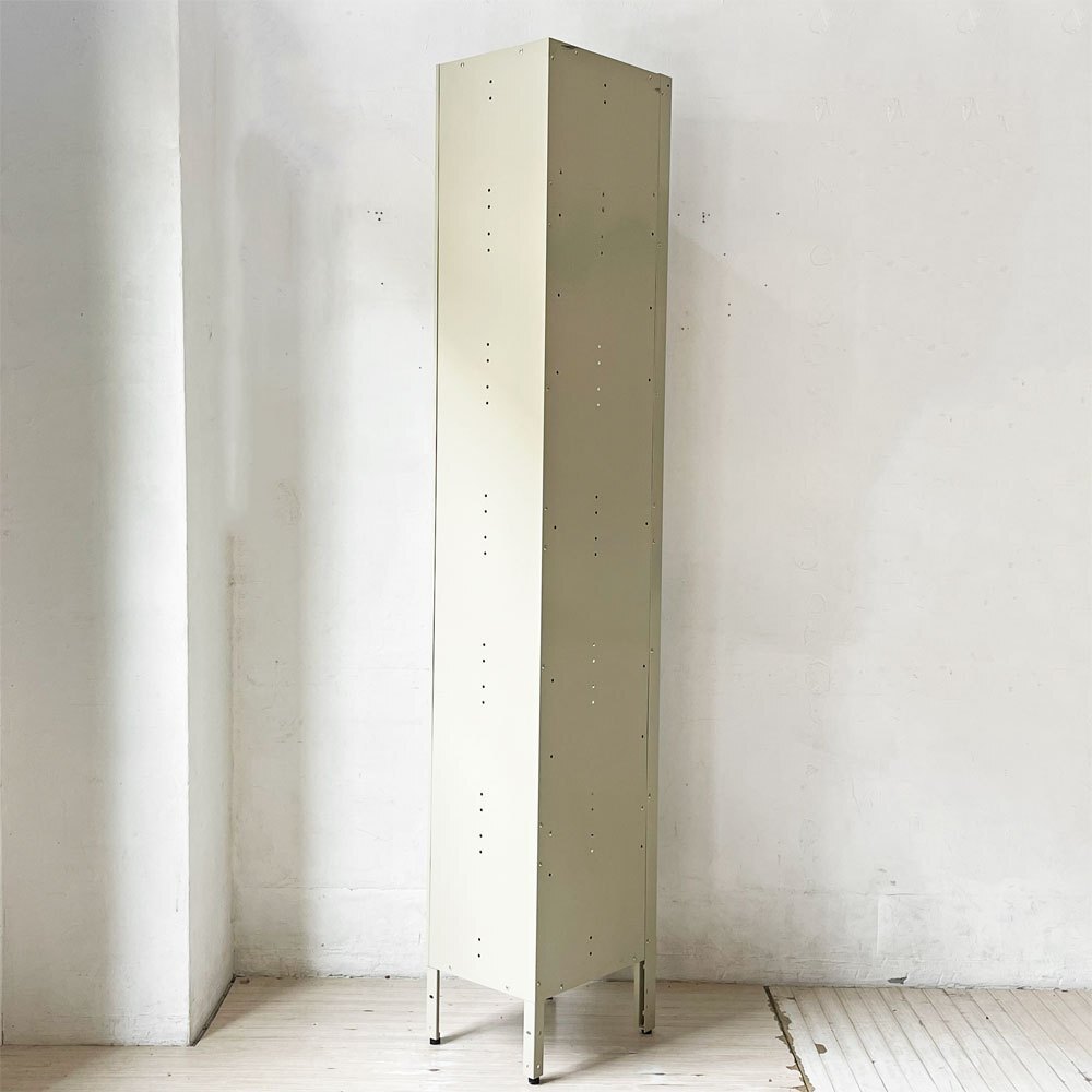 | コメント | 東京目黒に拠点を構え、ビンテージ家具からオリジナル家具まで幅広く取扱う、COMPLEX UNIVERSAl FURNITURE SUPPLY(コンプレックス ユニバーサルファニチャーサプライ)が立ち上げたオンラインストア、"WHOLE EQUIPMENT CATALOG"。 惜しくも2020年にクローズしましたが、時代を超えても色褪せない家具や道具を再発見・リプロダクトし、現代に落とし込んでいたメーカーでした。 こちらは、アメリカの学校や公共施設などで使用されているロッカーをモチーフにした"ジェネラルスチールロッカー "です。 内部上段には棚板が備えられており、靴や帽子など小物の収納も可能。 また、ハンガーラックも備わっておりジャケットなどの衣類も掛けられ、下段はカバンや靴の収納にもお使い頂けます。 ハンドルはリセス(埋め込み)タイプが採用され、上部の黒いレバーを上にあげる事で開閉する仕様です。 幅30.5cmのコンパクトなサイズ感は手狭な日本の居住空間に優しく、隙間収納としてもフィットしてくれる優れもの。 勿論、洋服を掛けたりといった従来の収納器具としての機能性も十二分に保たれておりますが、扉を開けて扉部分に物を吊るしたり、張ったり、内部の棚に小物を飾ったりと、工夫次第ではディスプレイ用品としても力を発揮しますので、ホームユースは勿論、カフェや店舗などの空間演出にも最適な一品となっております。 ※当ショップは、主にリサイクル品を取り扱っております。基本的にUSED品である事をご理解頂き、ご入札をご検討下さいませ。 |