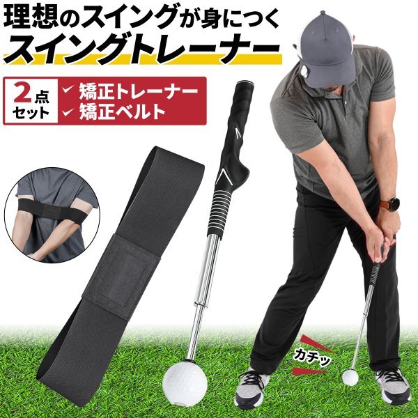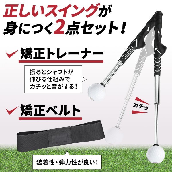 【正しいスイングが身につく2点セット】ゴルフが上手くなりたい!そんなあなたに毎日自宅で練習できるから、ぐんぐん上達します!矯正トレーナー+矯正ベルトのスイング練習器具2点セットです。