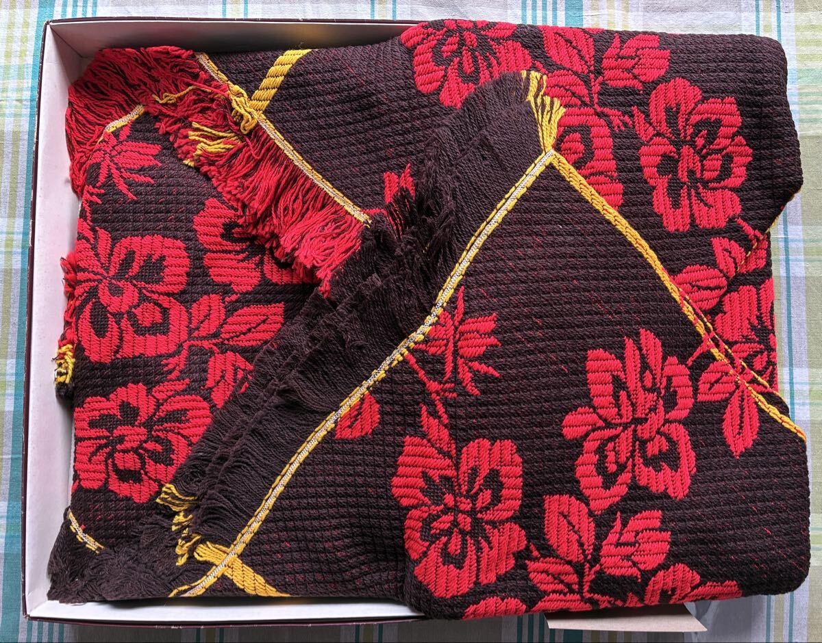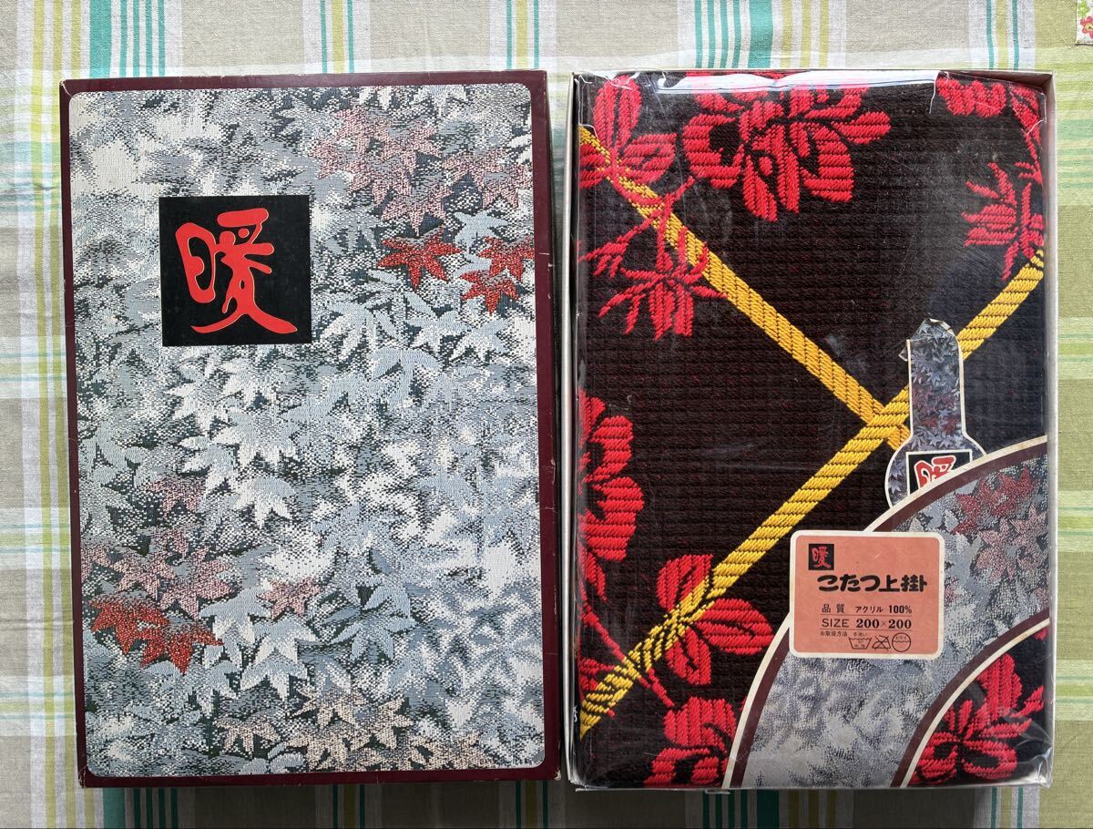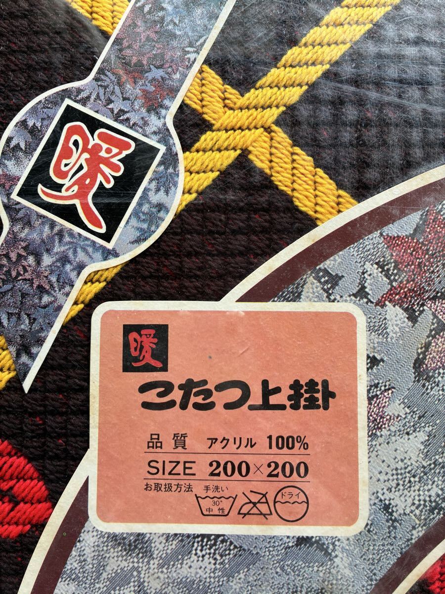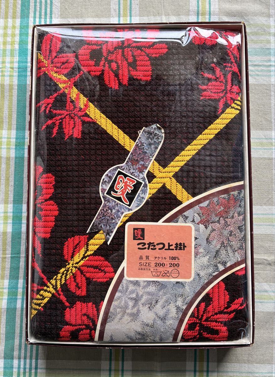 上掛け布団 こたつカバー こたつ上掛 アクリル100% 約200cm×200cm 赤 花柄 防寒具 昭和レトロ アンティーク 未使用