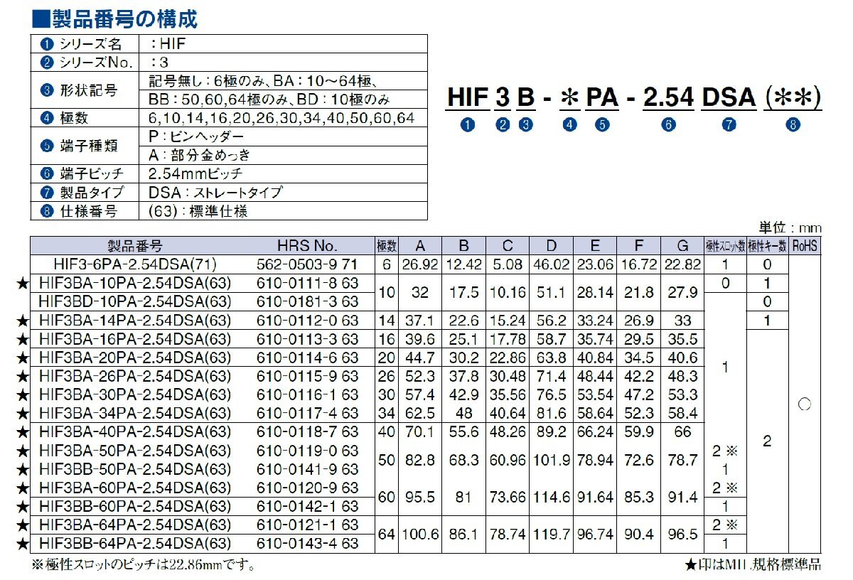 ■HRS HIF3BA-50PA-2.54DSA(63) (50極/基板接続用ピンヘッダ) [管理:SA2399]