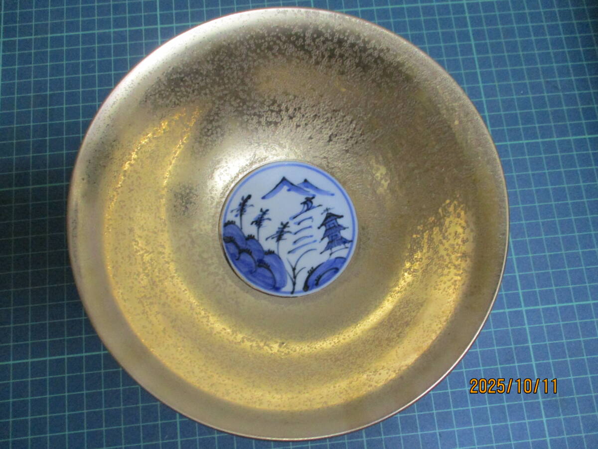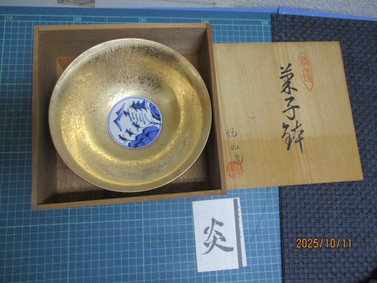 有田焼 菓子鉢 悦山造「金彩山水」 未使用・共箱・しおり付き 検 アンティーク、コレクション 工芸品 陶芸 日本の陶磁