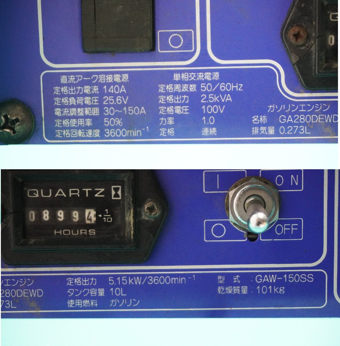 ■カテゴリー別のリンクはこちら■ →測定器・アマチュア無線 →工具・農業機械 →カメラ・映像機器 →オーディオ・楽器 →スポーツ・レジャー・自動車関連 →PC・周辺機器・ゲーム →ミシン・店舗用品・その他 ※便宜上、送料0円(送料無料)と表示されていますが、 実際の送料は無料ではなく、着払いになります。 落札後、住所確認致しましたら、送料のお見積りをお知らせいたします。 商品お受け取り時に配送業者にお支払いください。 ■商品説明■ ***************************** 全体サイズ: 約 70× 50× 66(高)cm パレット込みサイズ: 約 90× 70× 81(高)cm 当方でテスト用のバッテリーを使用し、 できる限りのテストをしたところ エンジンがかかり、テスト用ライトが点灯することにより 発電することを確認しました。 溶接機につきましては、 短時間のテストをしたところ、溶接ができました。 本商品に対して専門ではないために 細部に渡る細かなチェックはできておりません。 また、中古品としてご理解いただき、 ノークレーム・ノーリターンでお願い致します。 ■外観■ 状態については写真判断の程よろしくお願いいたします。 中古品ですのでキズ、汚れ、擦り傷、サビなどが有ります。 付属品に関しては、写真の物が全てです。 バッテリーは付属しません。 ******************************** 台車やパレットを撮影用に使用している場合、付属しません。 バッテリー等の消耗品が付属する場合 どの程度消耗しているか不明ですので、保証は致しかねます。 ガソリンやオイルを使用している商品の場合は、 配送中の油漏れ防止のため 抜いて発送致しますので、ご了承ください。 ******************************* ノークレーム・ノーリターンでお願いいたします。 | ||||