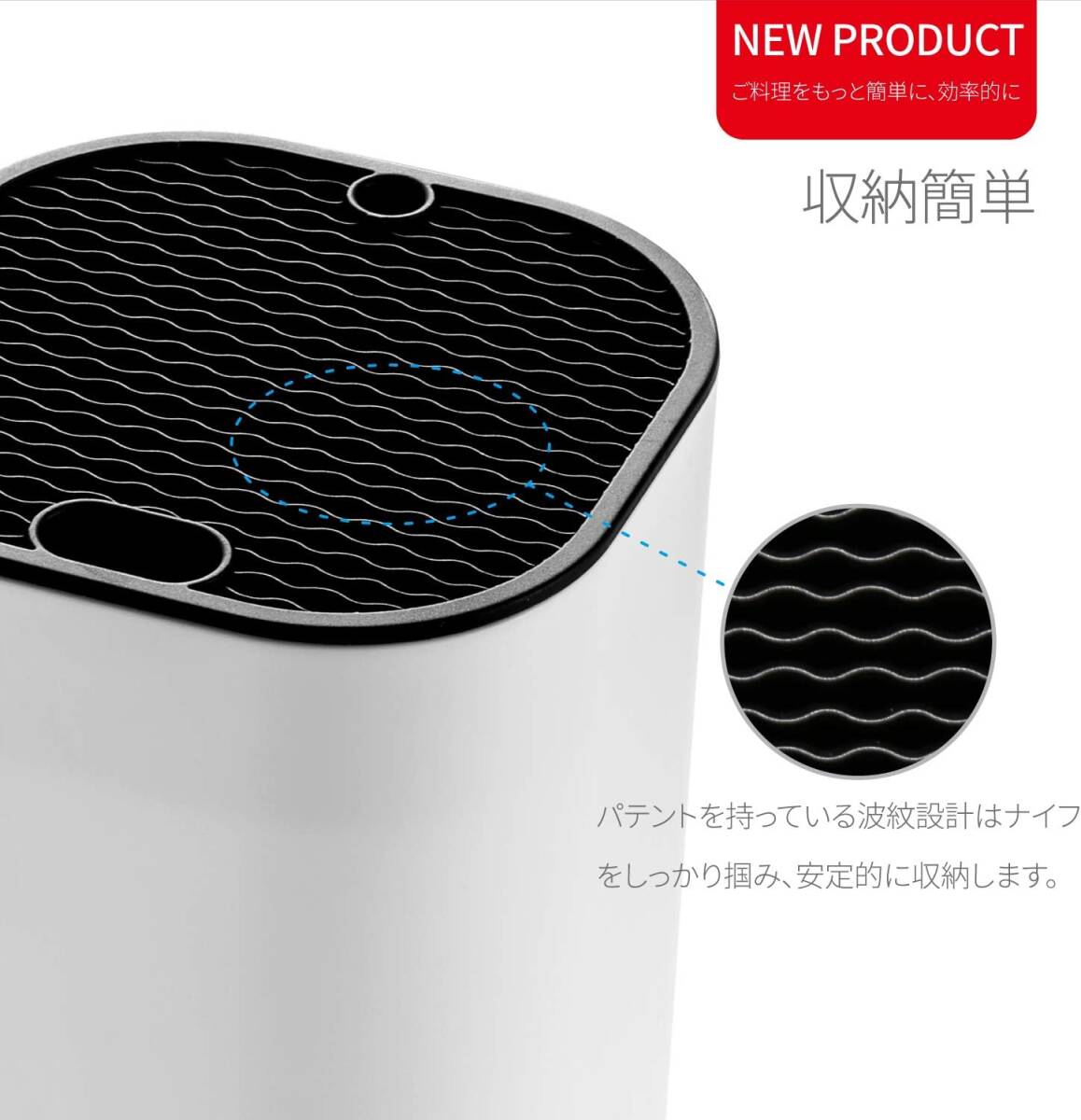 上部の挿入穴は普通の直線型ではなく、波紋の形をしており、ナイフをしっかりと掴み固定できます。挿し込んだナイフが簡単に揺れることはありません。