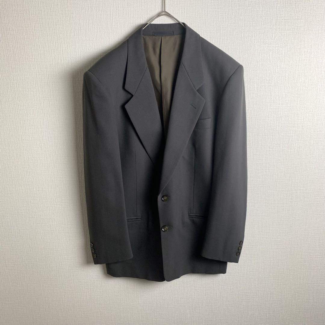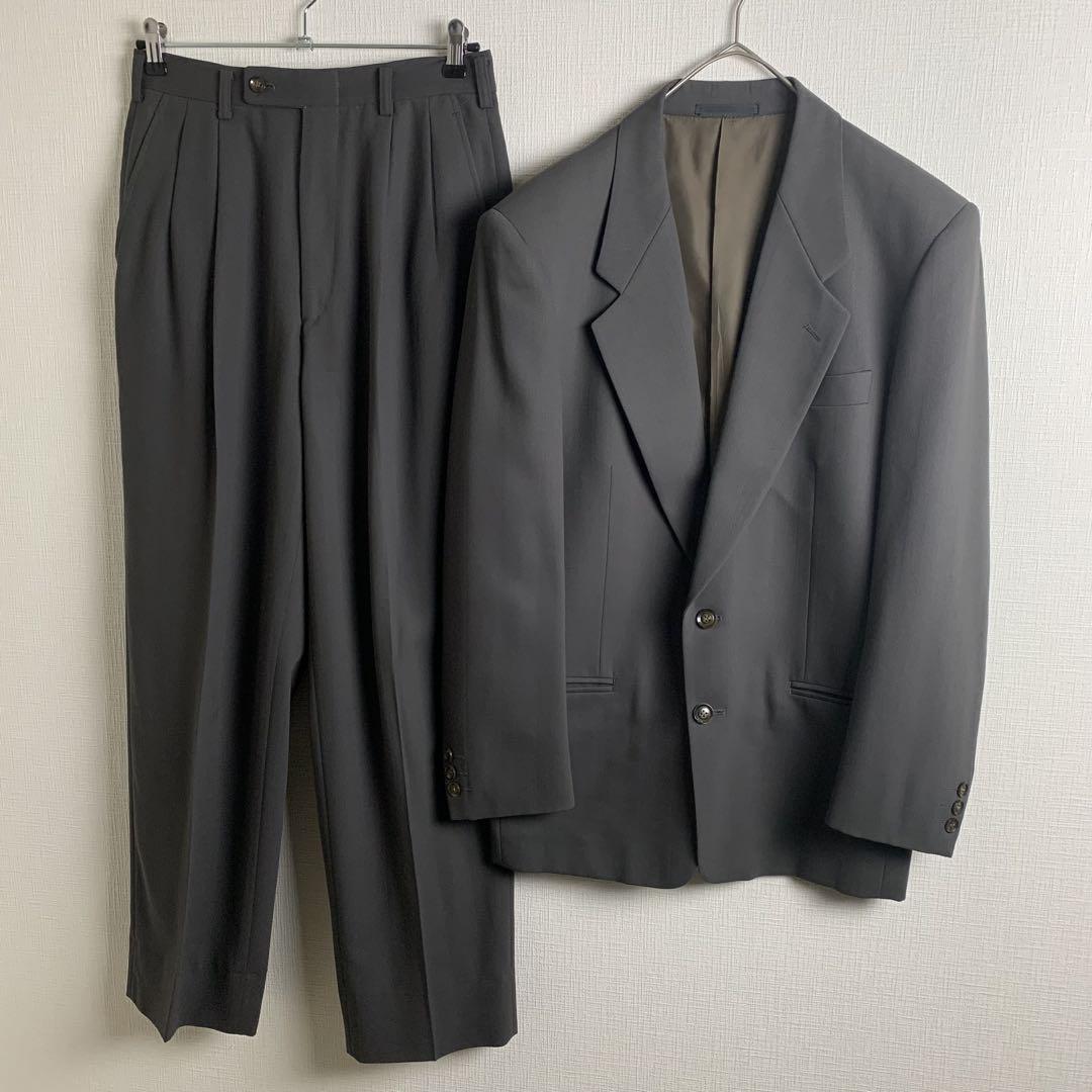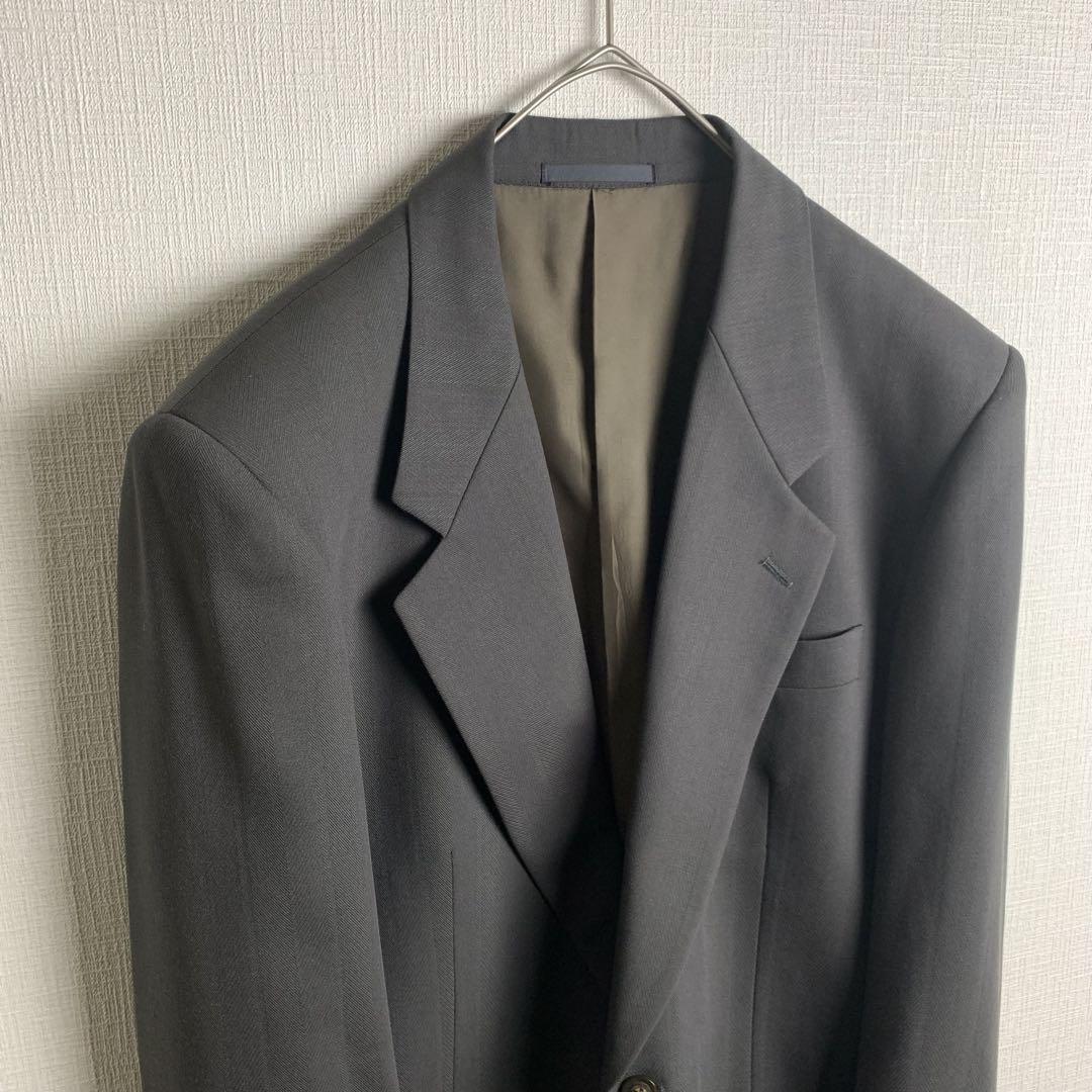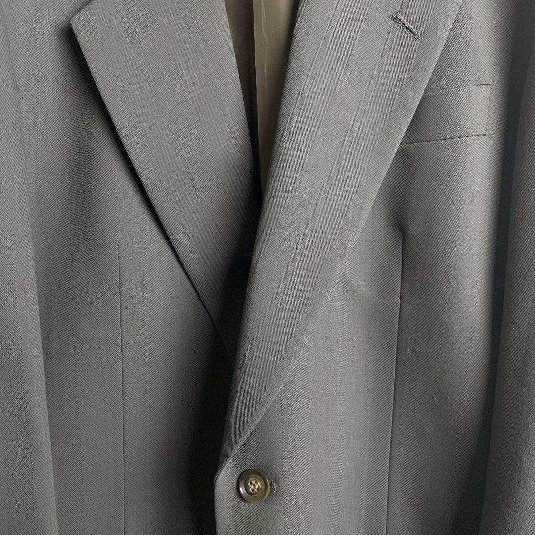 セットアップ スーツ ヘリンボーン カーキグリーン ウール シングル セレモニー 結婚式 ビジネス メンズ 古着