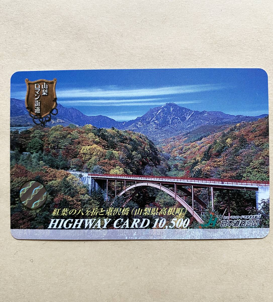 【使用済】 ハイウェイカード 日本道路公団 山梨ロマン街道 紅葉の八ヶ岳と東沢橋 (山梨県高根町)