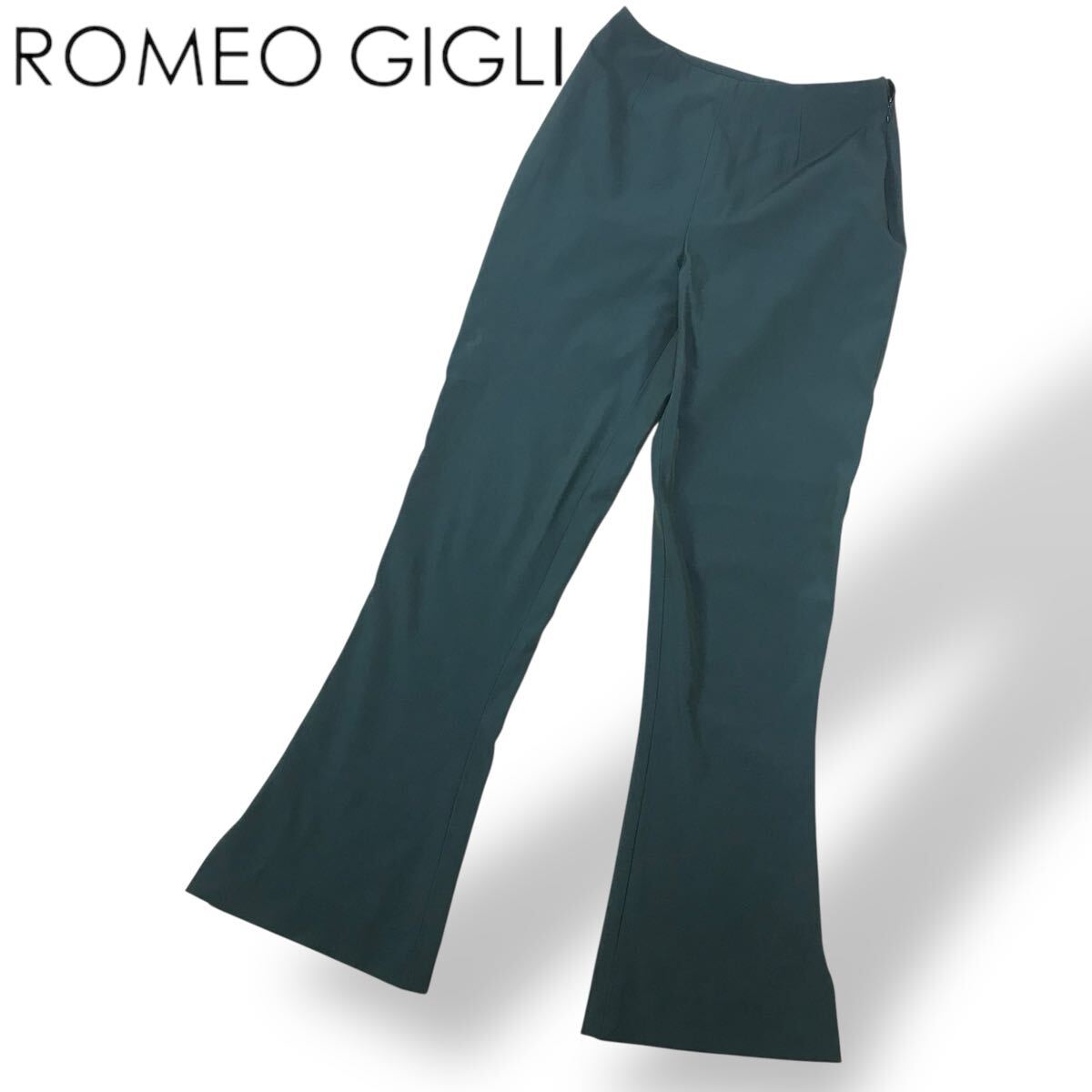 d178 ROMEO GIGLI ロメオジリ 裾スリット ストレッチ パンツ スラックス ボトム オーロラグリーン ナイロン イタリア製 Vintage 正規品