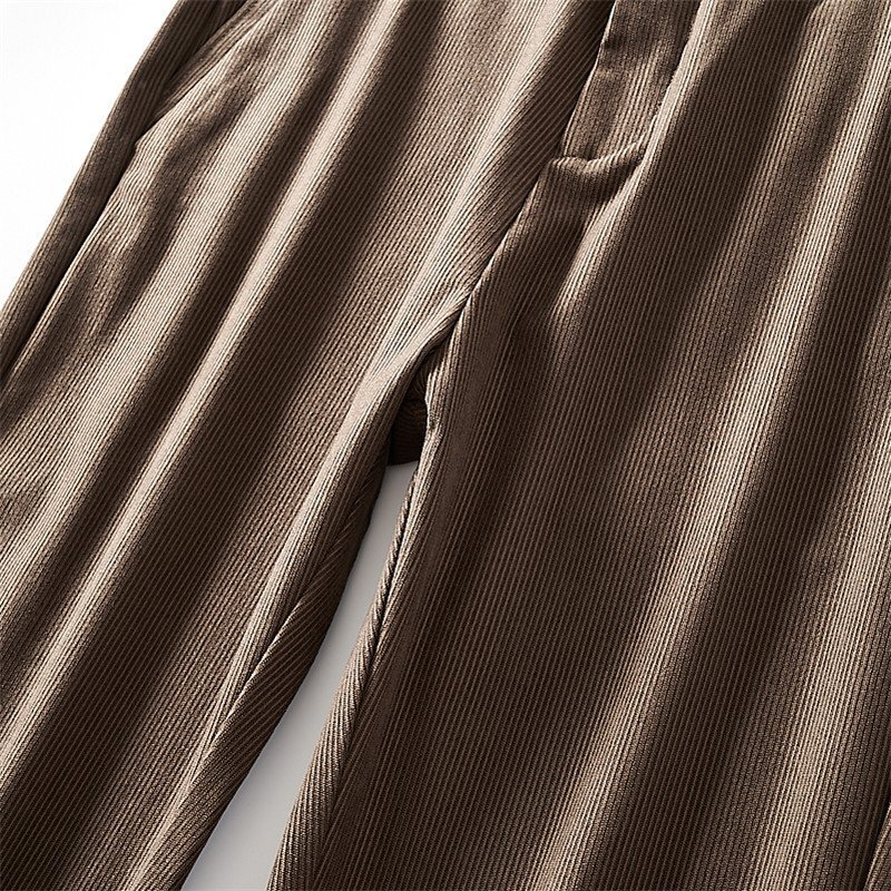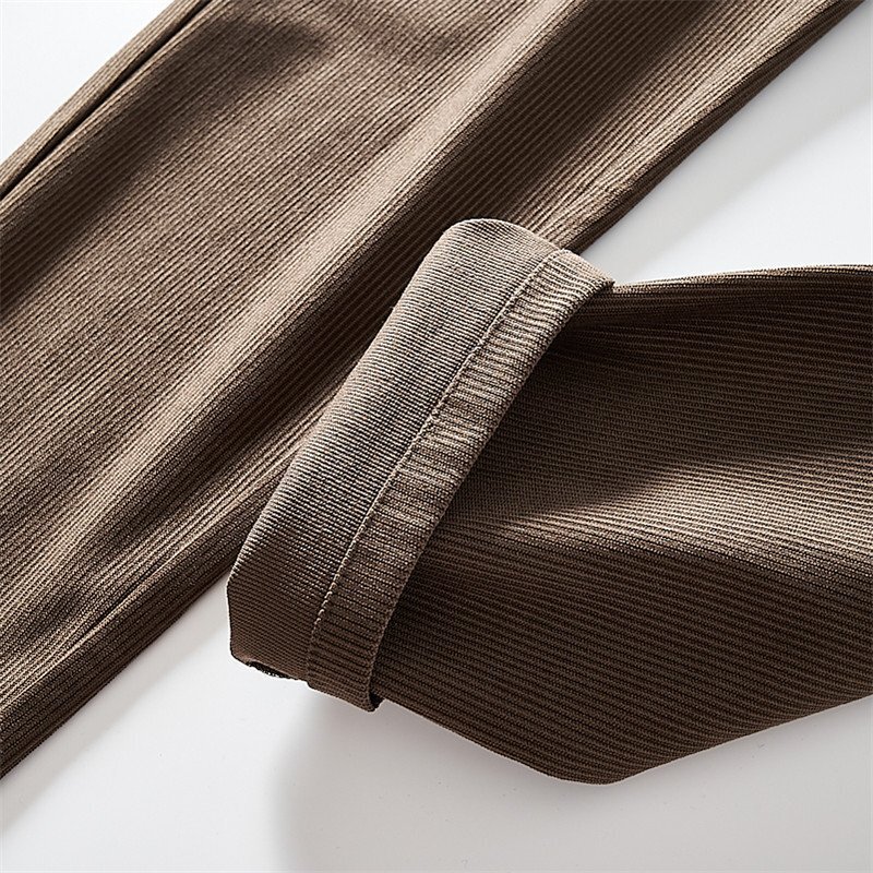 新品 リブ編み ニット コーデュロイ テーパードパンツ ストレッチ メンズスラックス 秋冬 厚手 紳士 ウエストゴム ロングパンツ 灰 T7136-3XL