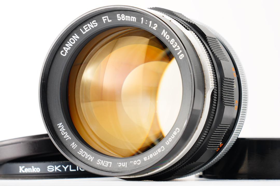 このレンズは逆光やポートレート撮影に優れ、特に開放時の球面収差による柔らかい描写が魅力。歴史的には、初期型FLレンズとしてCanonの技術革新を象徴する存在であり、後の55mm F1.2へと進化しました。