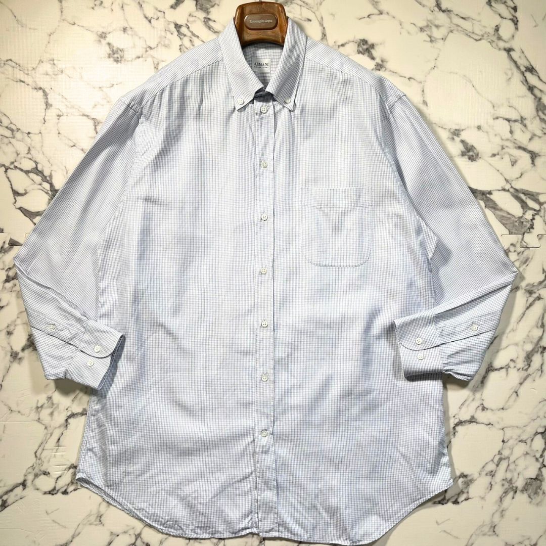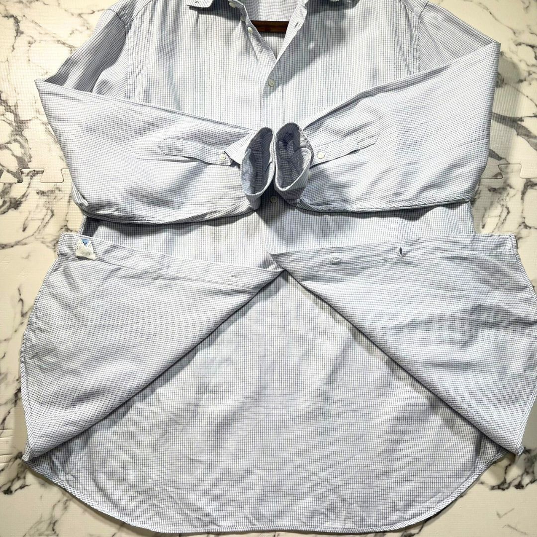 美品/格子柄/特大サイズ43(2XL)●ARMANI COLLEZIONI 長袖 シャツ カジュアル ホワイト 白 ブルー 青 アルマーニ コレッツォーニ コットン