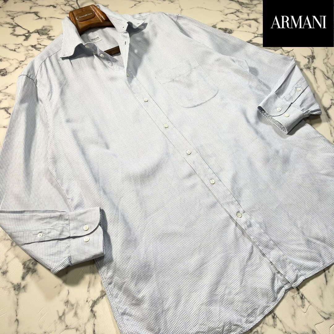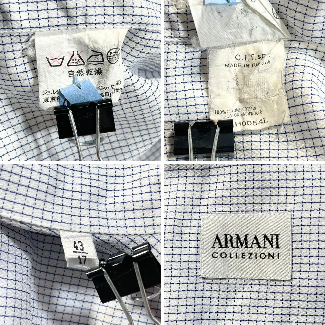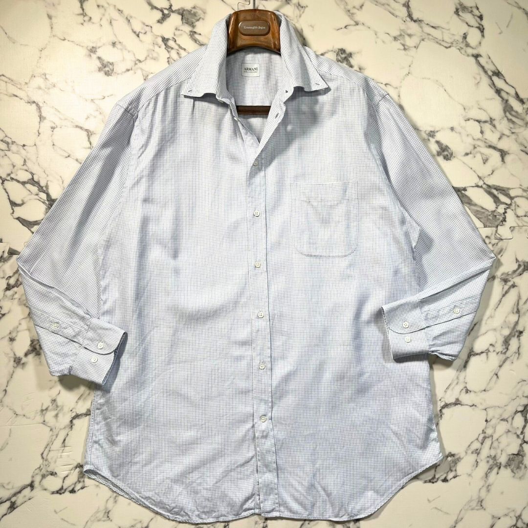 美品/格子柄/特大サイズ43(2XL)●ARMANI COLLEZIONI 長袖 シャツ カジュアル ホワイト 白 ブルー 青 アルマーニ コレッツォーニ コットン