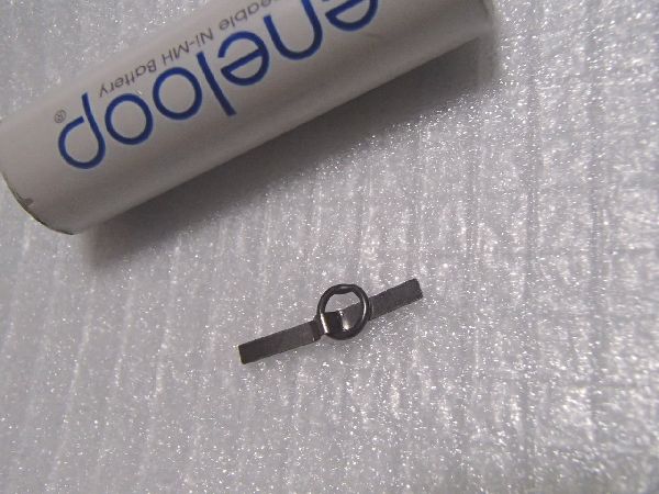 (注)色や入荷のロットにより、ブランクに取り付けられる金属片のほうが、中央部が画像のように曲げられておらず真っ直ぐな場合があります。この場合、爪楊枝などに巻き付けてまず中央の丸みを付け、その後ラジオペンチ等でその丸みの左右を曲げて画像のような形にして下さい。硬くないので指でも曲げられます。