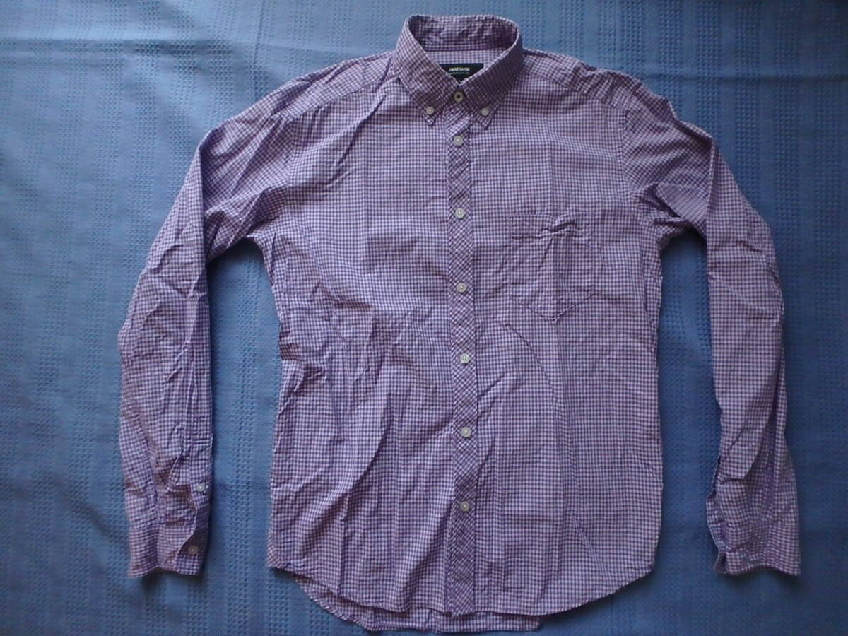 COMME CA ISM/コムサイズム 長袖シャツ ギンガムチェック 綿 紫 パープル L