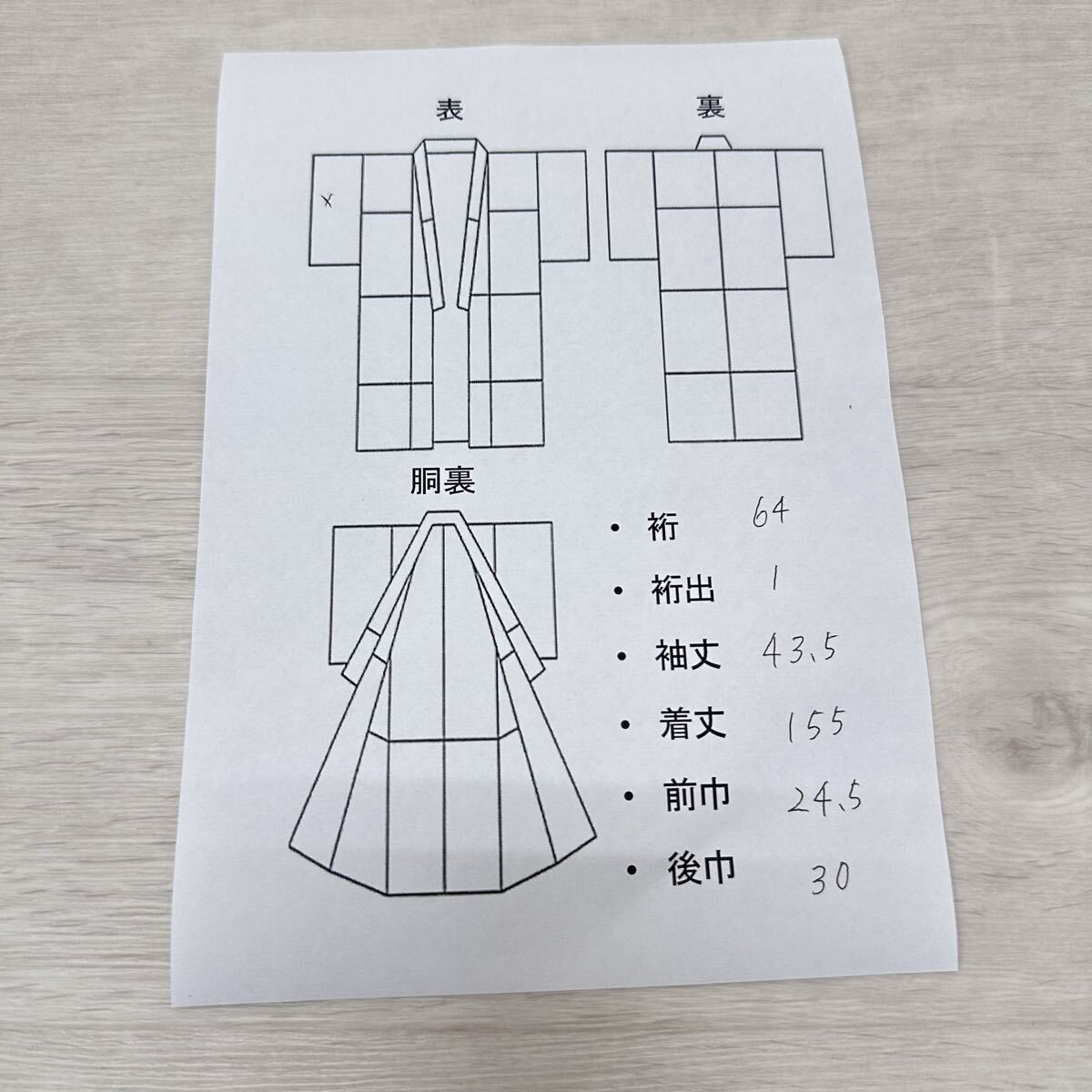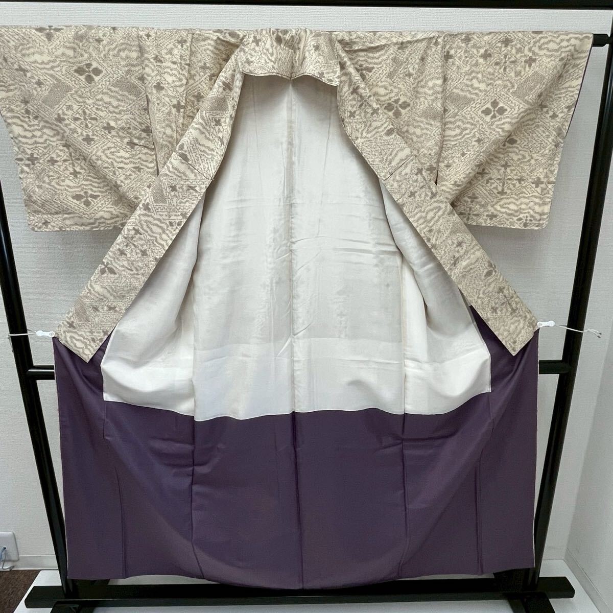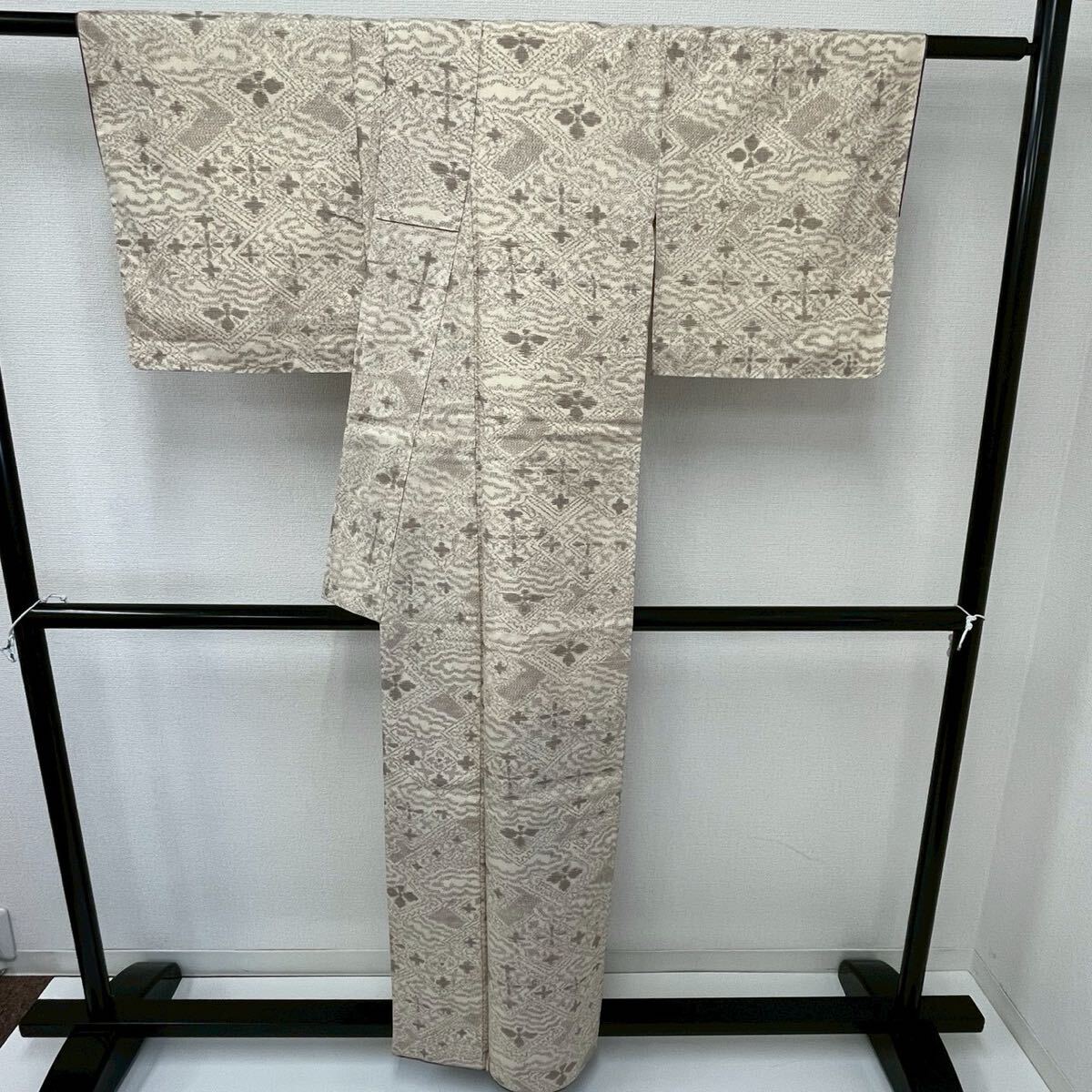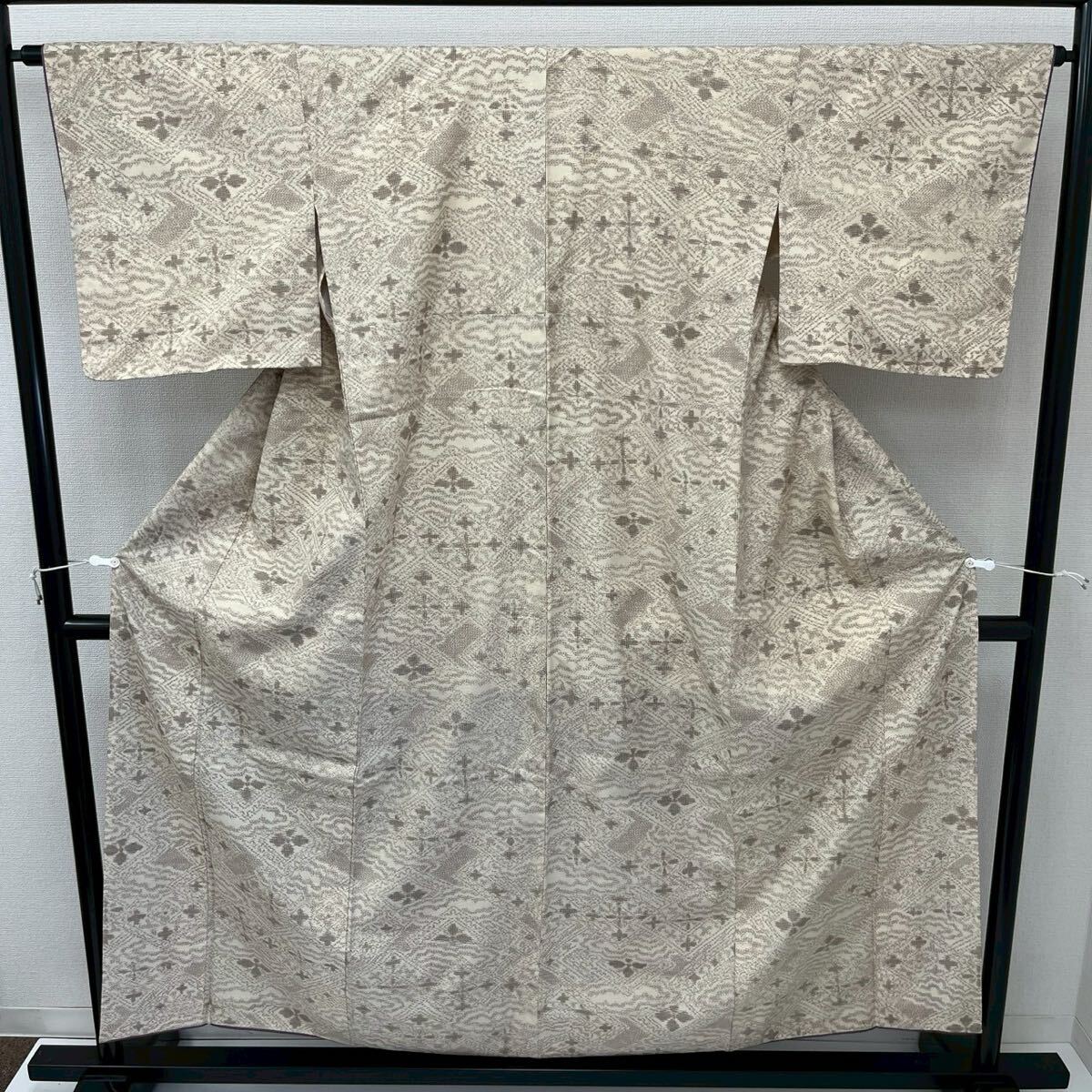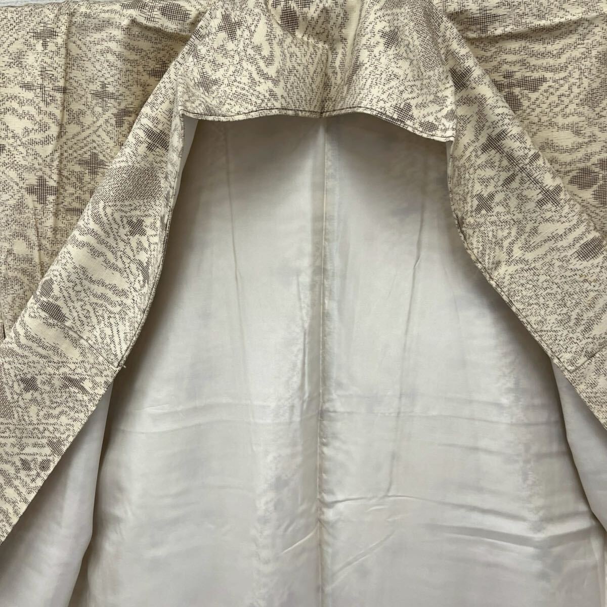 【蒼】紬 幾何学模様 細かな絣 着物 正絹 Q-025