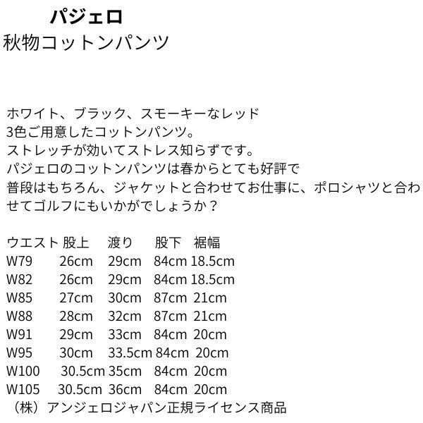 商品名 | パジェロ カジュアルパンツ レッド W91cm バック刺繍 56-5399-07 綿パン メンズ カジュアル men's 秋 冬 AW ズボン新品 正規品 ゴルフ 厚手 プレゼント ギフト ストレッチ素材 ノータック 洋服 服 紳士服 |