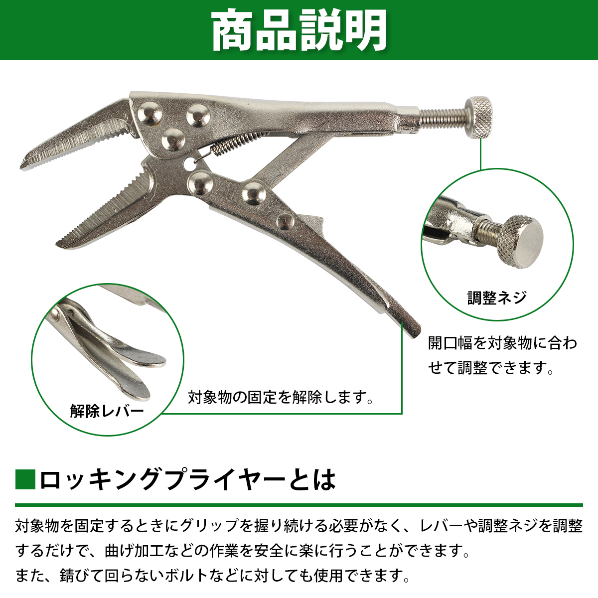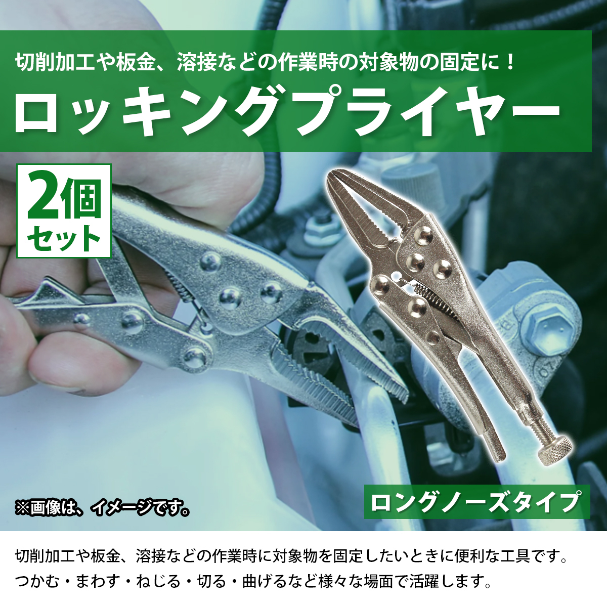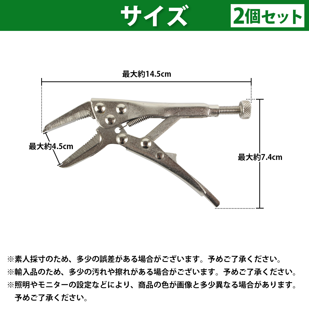 2個 ロング爪 ミニ ロッキング プライヤー 13cm ロック バイス グリップ 万力 固定 鈑金 溶接 ペンチ 130mm 5インチ 2本